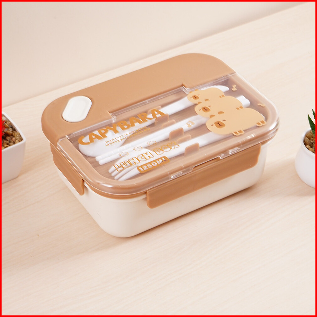 Ataru 1.2 Ltr Kotak Makan 3 Sekat Dengan Alat Makan Capybara - Lunch Box Food Grade Food Box Kotak Bekal Makan Wadah Mak