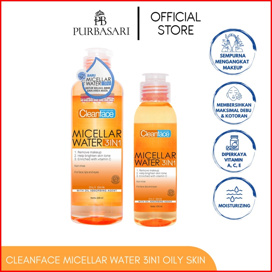 Cleanface Micellar Water 3in1 For Oily Skin 250 Ml Pembersih Wajah Pembersih Makeup Waterproof