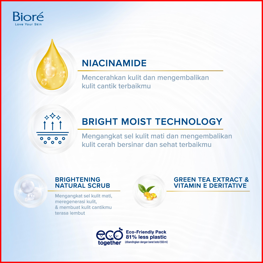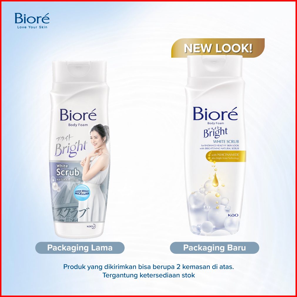 Biore Bright Sabun Mandi Cair Pencerah Kulit White Scrub Eksfoliasi Botol 220 Ml - Sabun Cair Body Wash