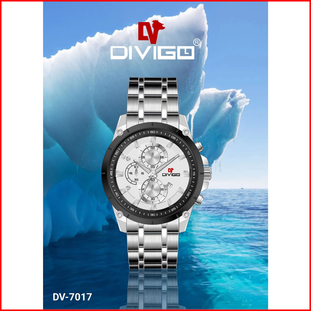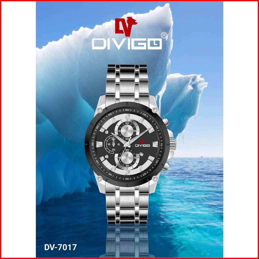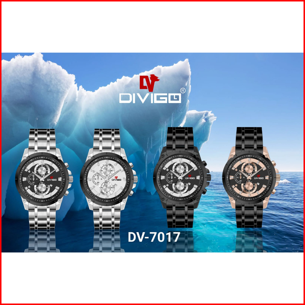 Jam Tangan Pria Divigo Dv-7017 Sporty Rantai Staintless Steel Free Box