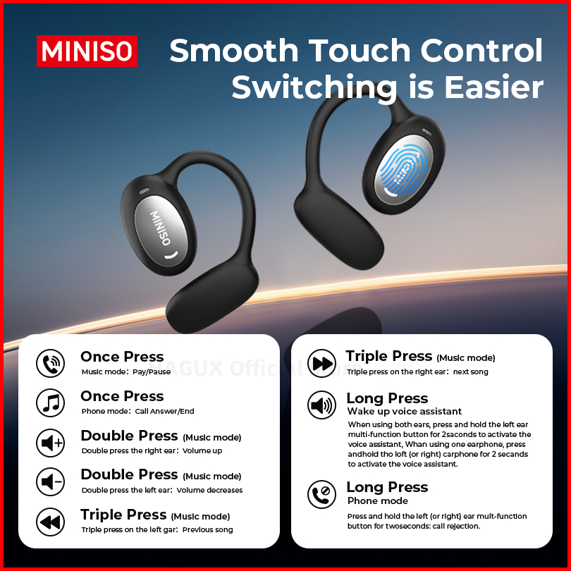 Miniso Ms181 Wireless Bluetooth Headset V5.4 Ows Tws Open Ear Earphone Tws Earhook Headset Olahraga Earphone Sport Ipx5