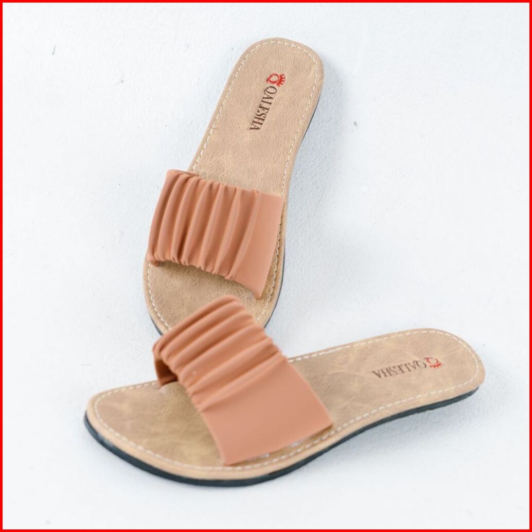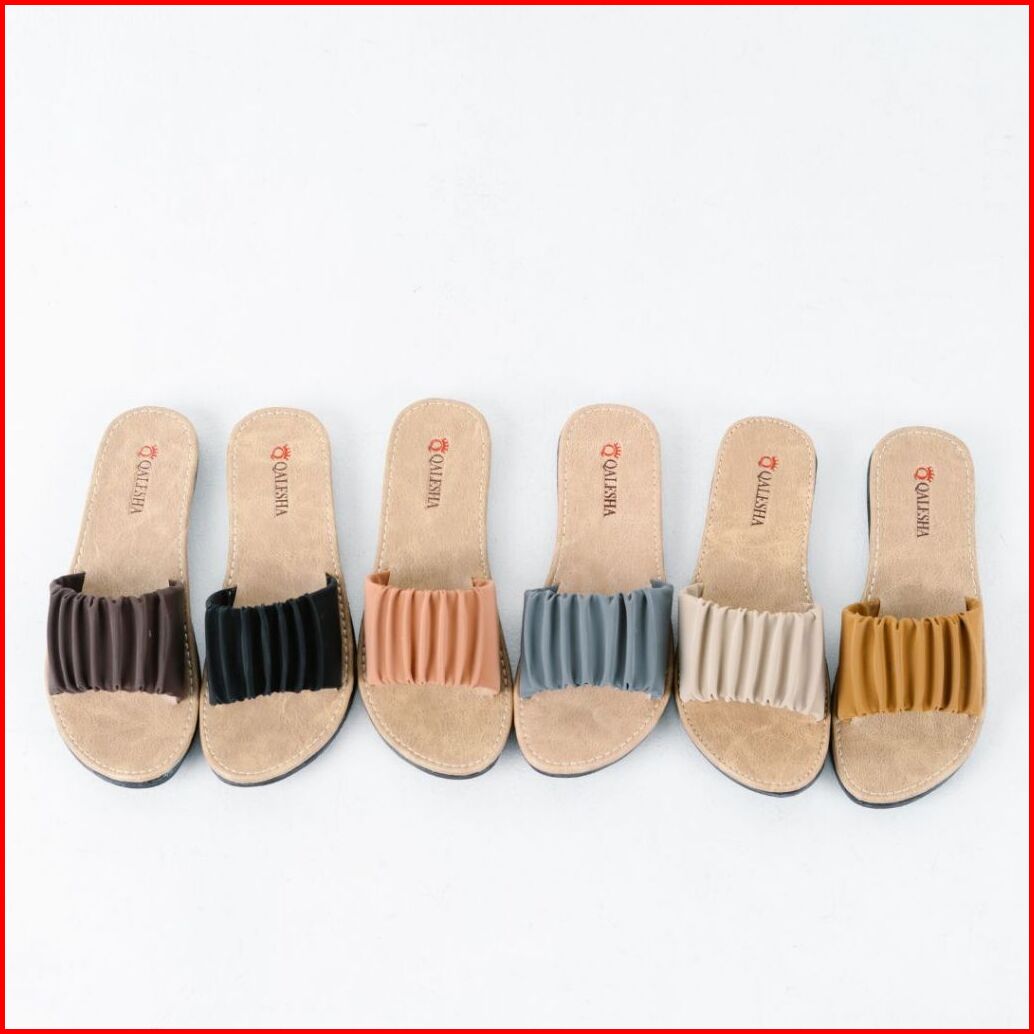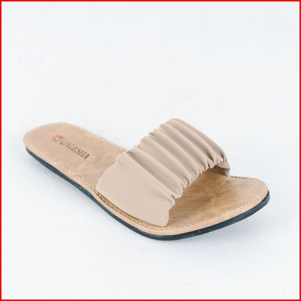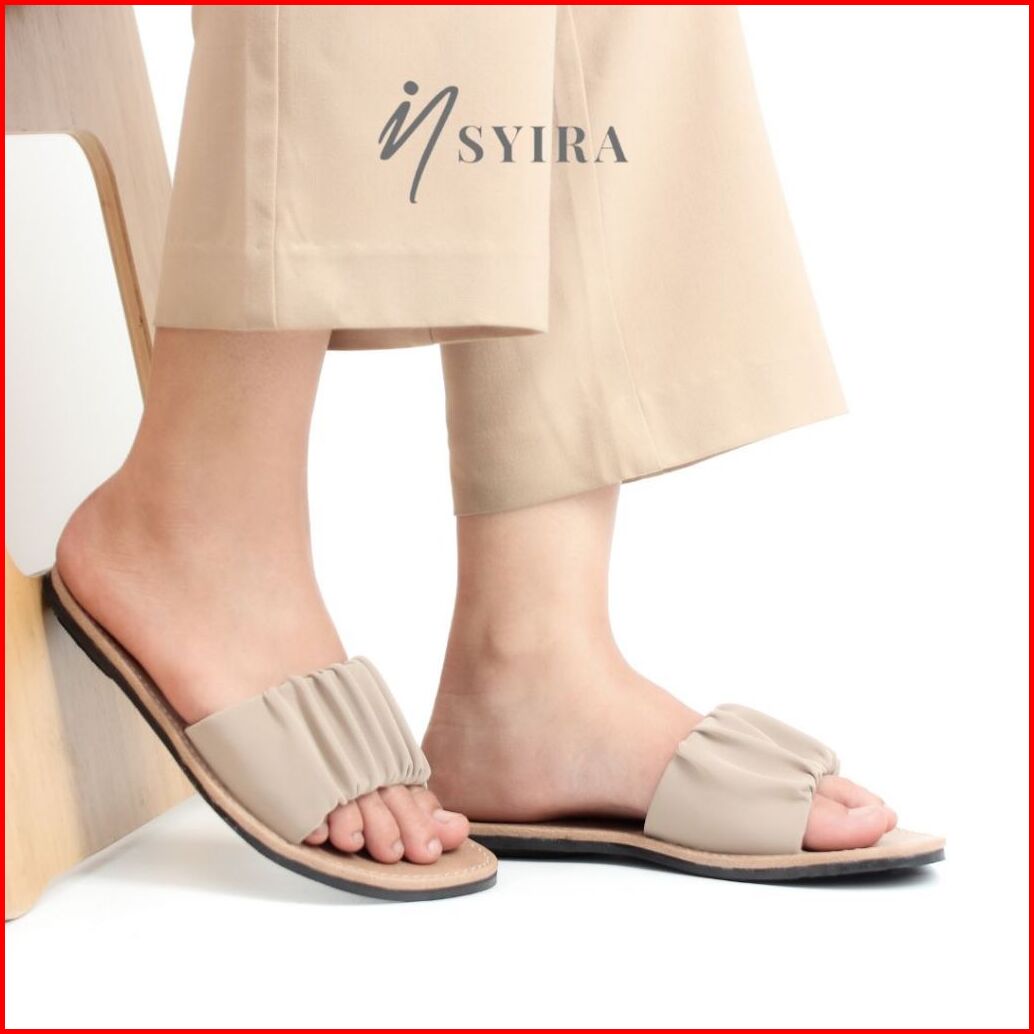 Sandal Wanita Kekinian Selop Kerut Sylvia Sandal Selop Wanita Non Slip Alas Krem