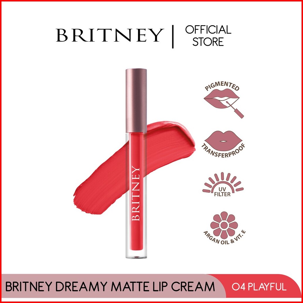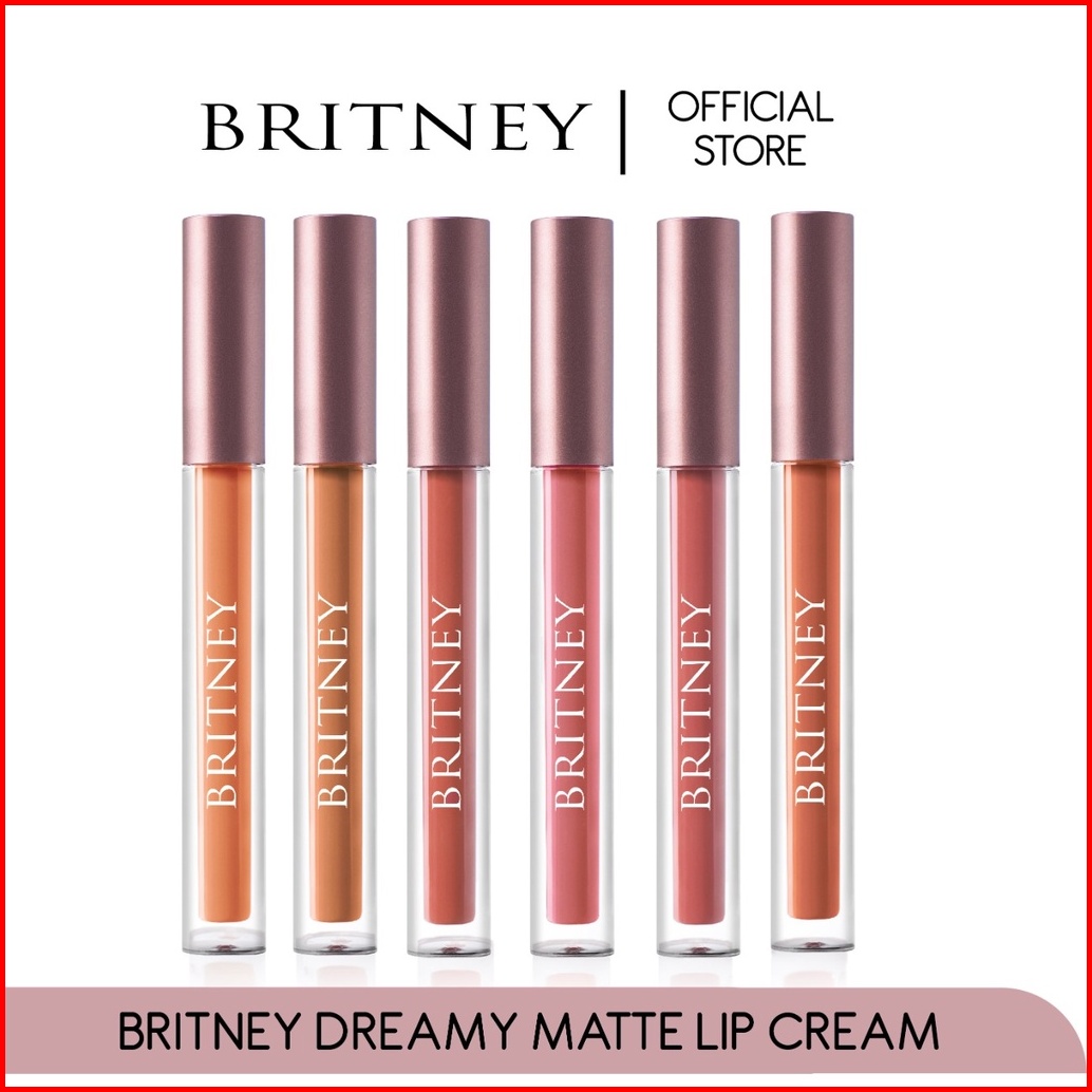 Britney Dreamy Matte Lip Cream - Matte Lipcream Warna Intens Lembut - Pigmented - Tahan Lama - Matte Finish - Transferpr