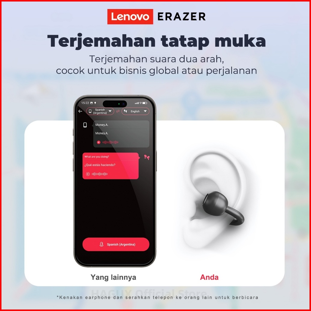 Lenovo Erazer Xf50 True Wireless Bluetooth Headset V6.0 Headphone Terjemahan Ai Terjemahkan 134 Bahasa Asing Ows Tws Ope