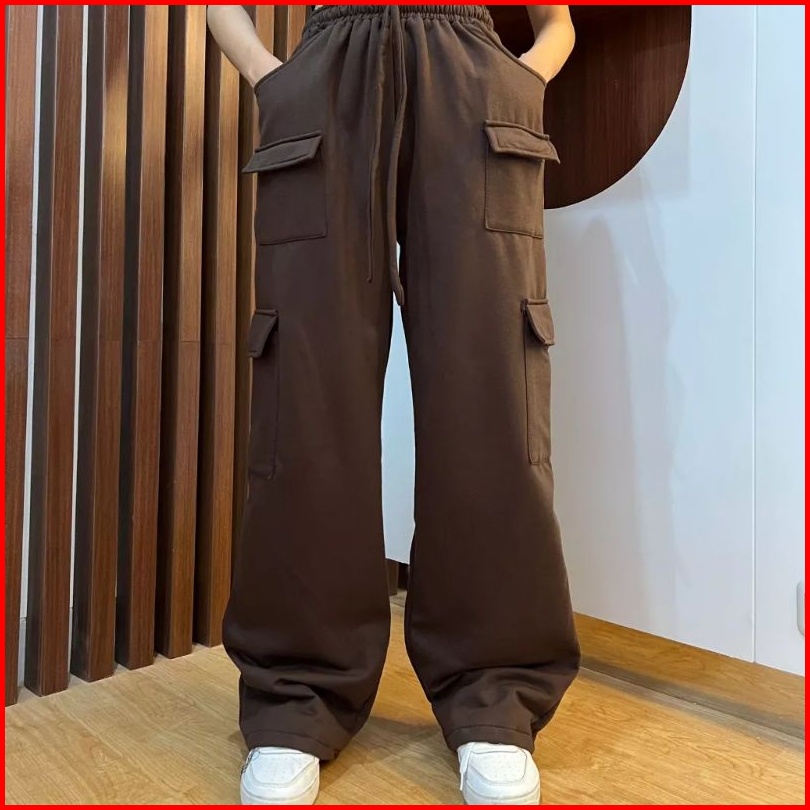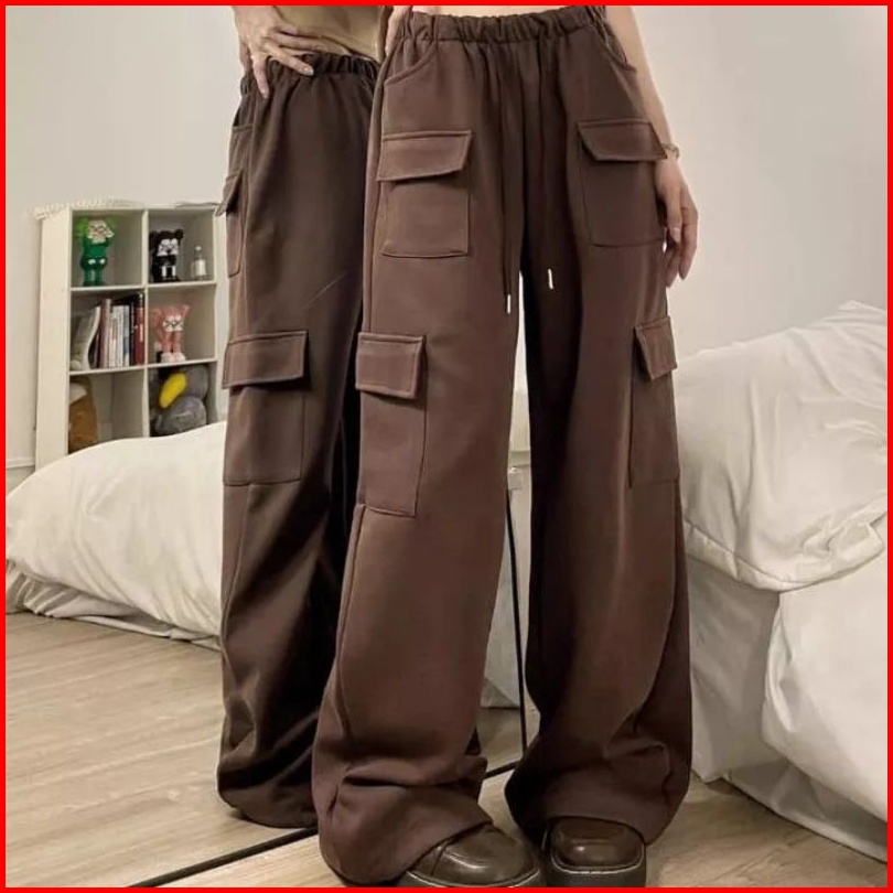 Jooly Up Cargo Sweatpants Celana Cargo Saku Potongan Longgar Celana Jogger Kulot Wanita Korean Style