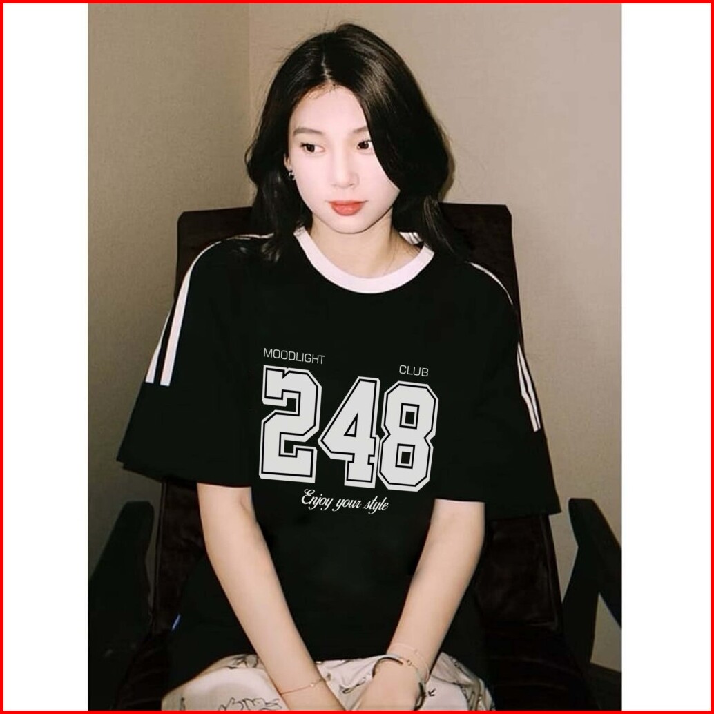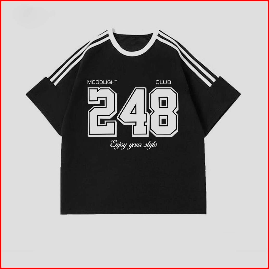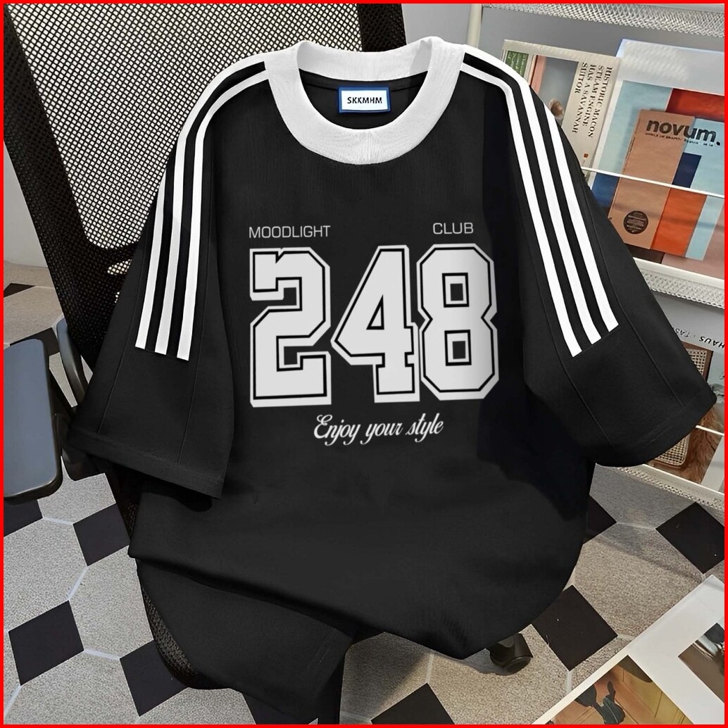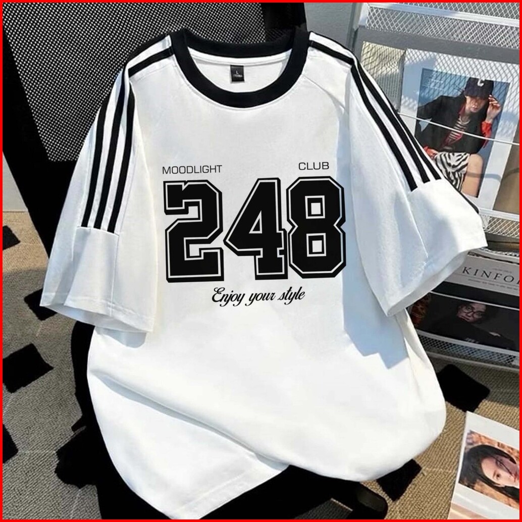Boxy Garis Tiga No.248 Oversize Wanita Pria Hitam Putih Korean Retro Style High Qualitty