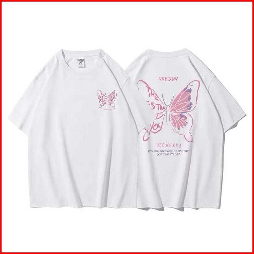 T-shirt Atasan Baju Kaos Oversize Pria Hitam Putih Dewasa Distro Lengan Pendek Keren Premium 100 Original Pola Kupu-kupu