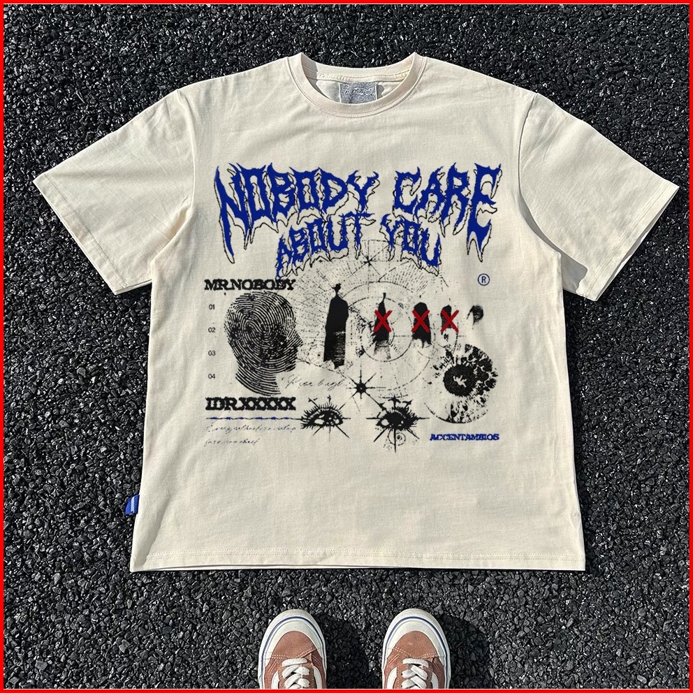 Boombap American Retro Style T-shirt Oversize Hip-hop Dark Series Graffiti Print Kaos Wanita Putih Kaos Pria Dan Wanita