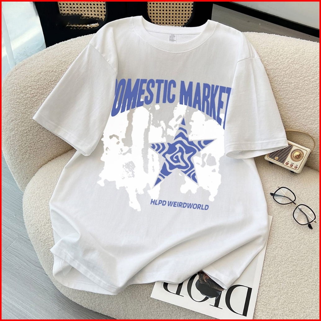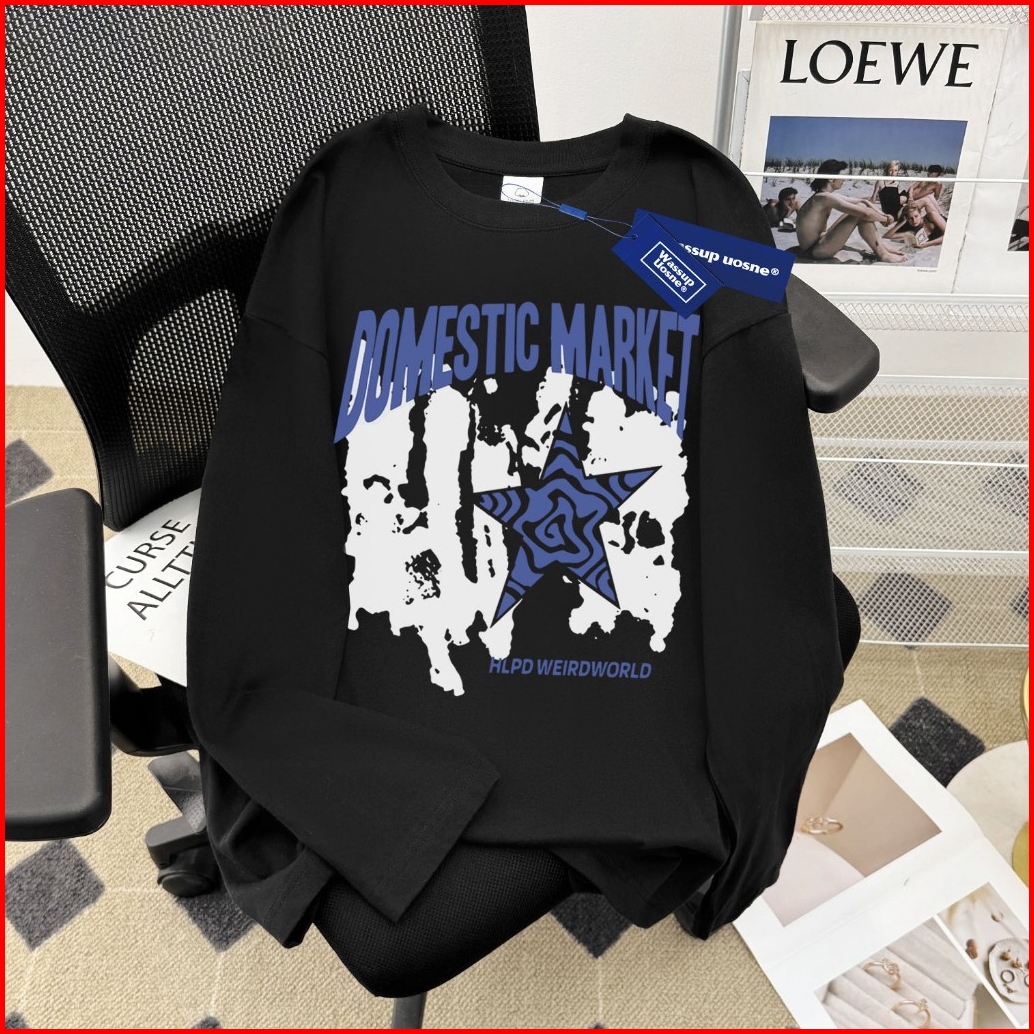 Auzy American Retro Style Lengan Panjang Oversize Bintang Hip Hop Print Top Lengan Panjang Pria Wanita Hitam Baju Atasan