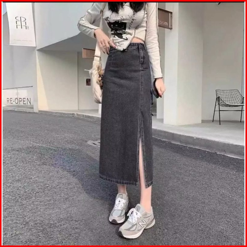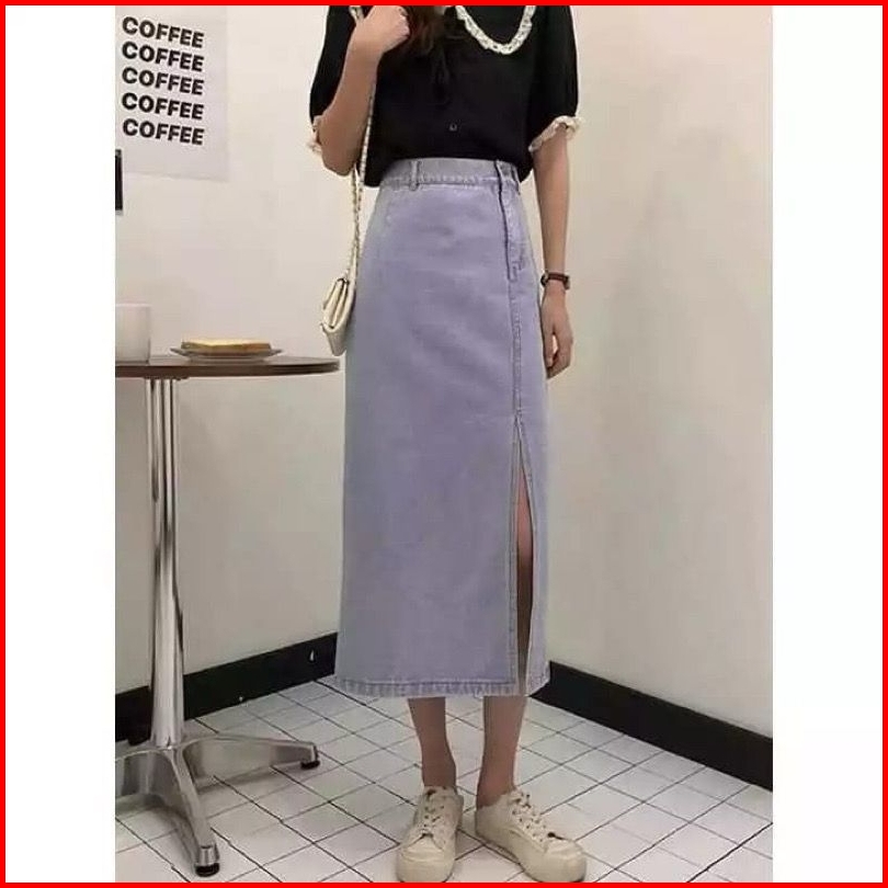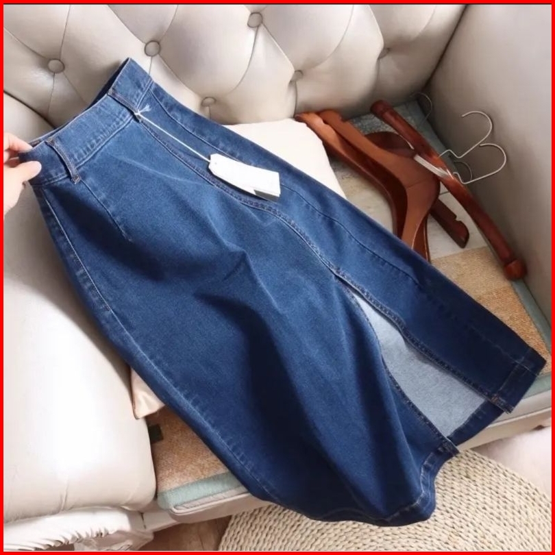 Rok Jeans Higwaist Belah Samping Korean Style Rok A-line