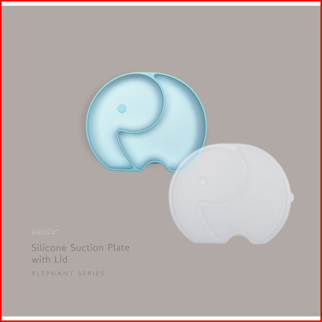 Keola - Suction Trans Elephant Plate With Lid Piring Tempat Makan Anak Silicone Food Grade Mpasi Anak Premium Silicone
