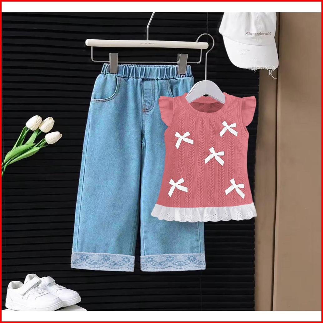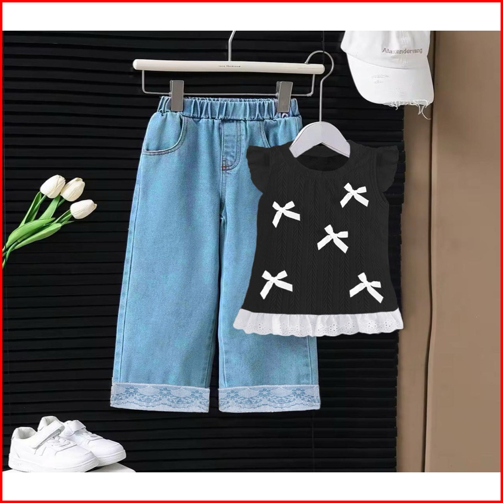Setelan Anak Perempuan Baju Anak Cewek Lucu Baju Anak Cewek Umur 1-5 Tahun Celana Jeans Renda Fashion Anak Perempuan Ter
