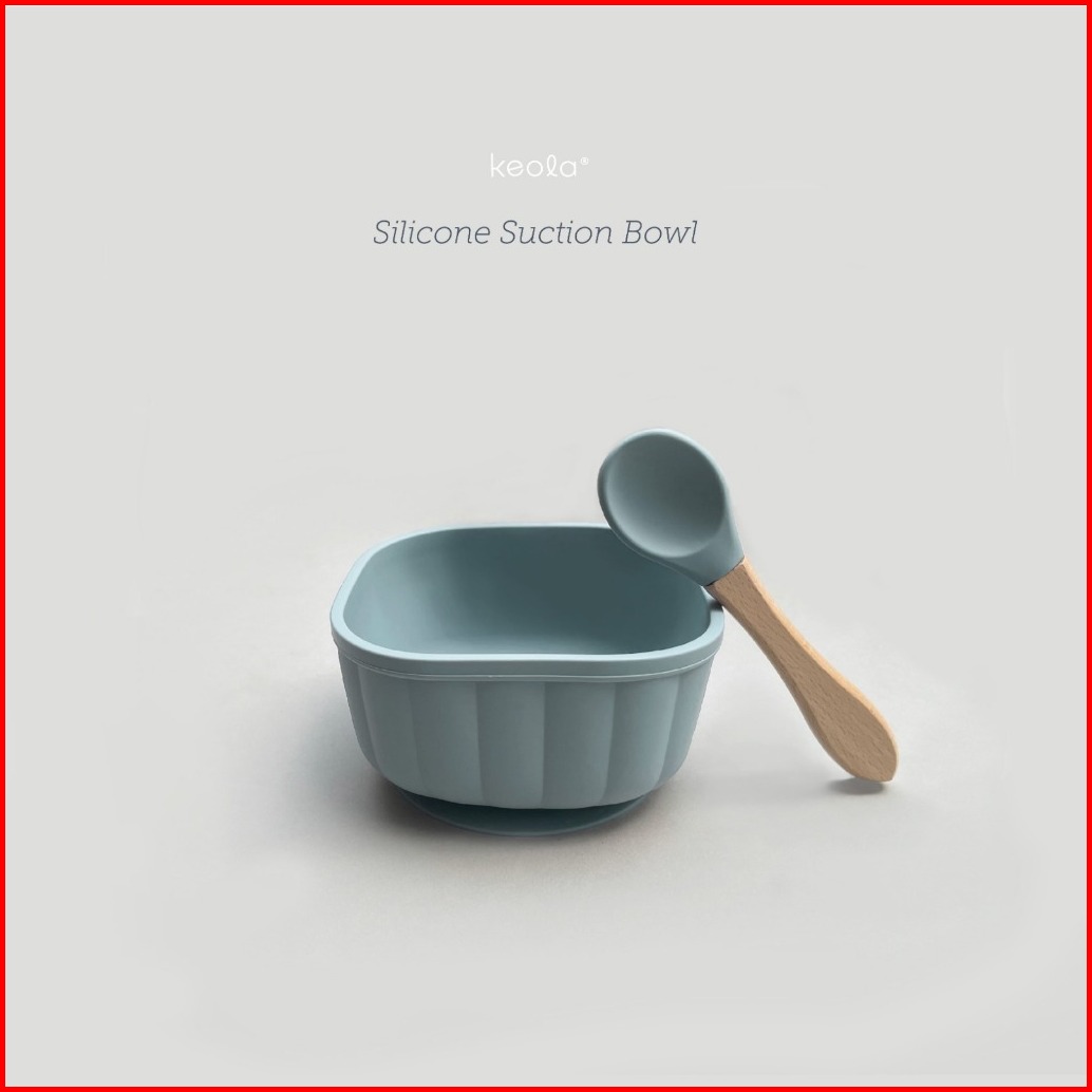 Keola - 2pcs Silicone Bowl Suction Square Spoon Mangkok Dan Sendok Silikon Mpasi Anak Premium