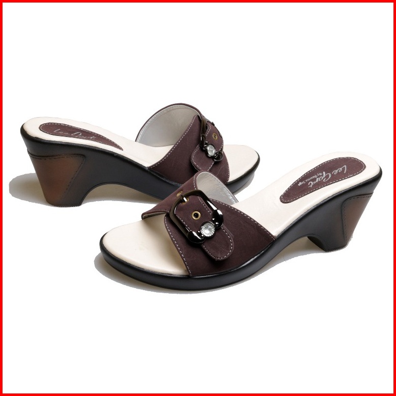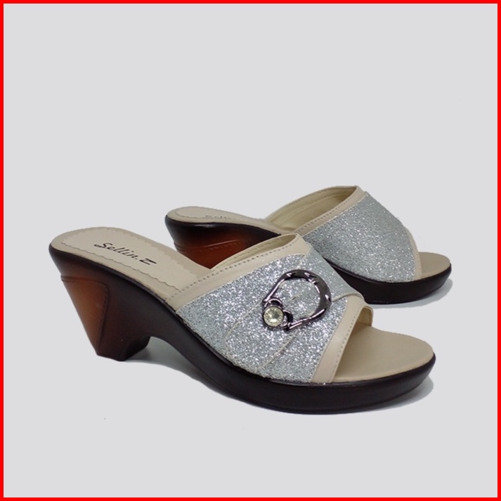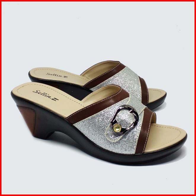 Sandal Clog Wanita Wedges Zt16.wedges Silver Coklat Kondangan Ibu Ibu Modis