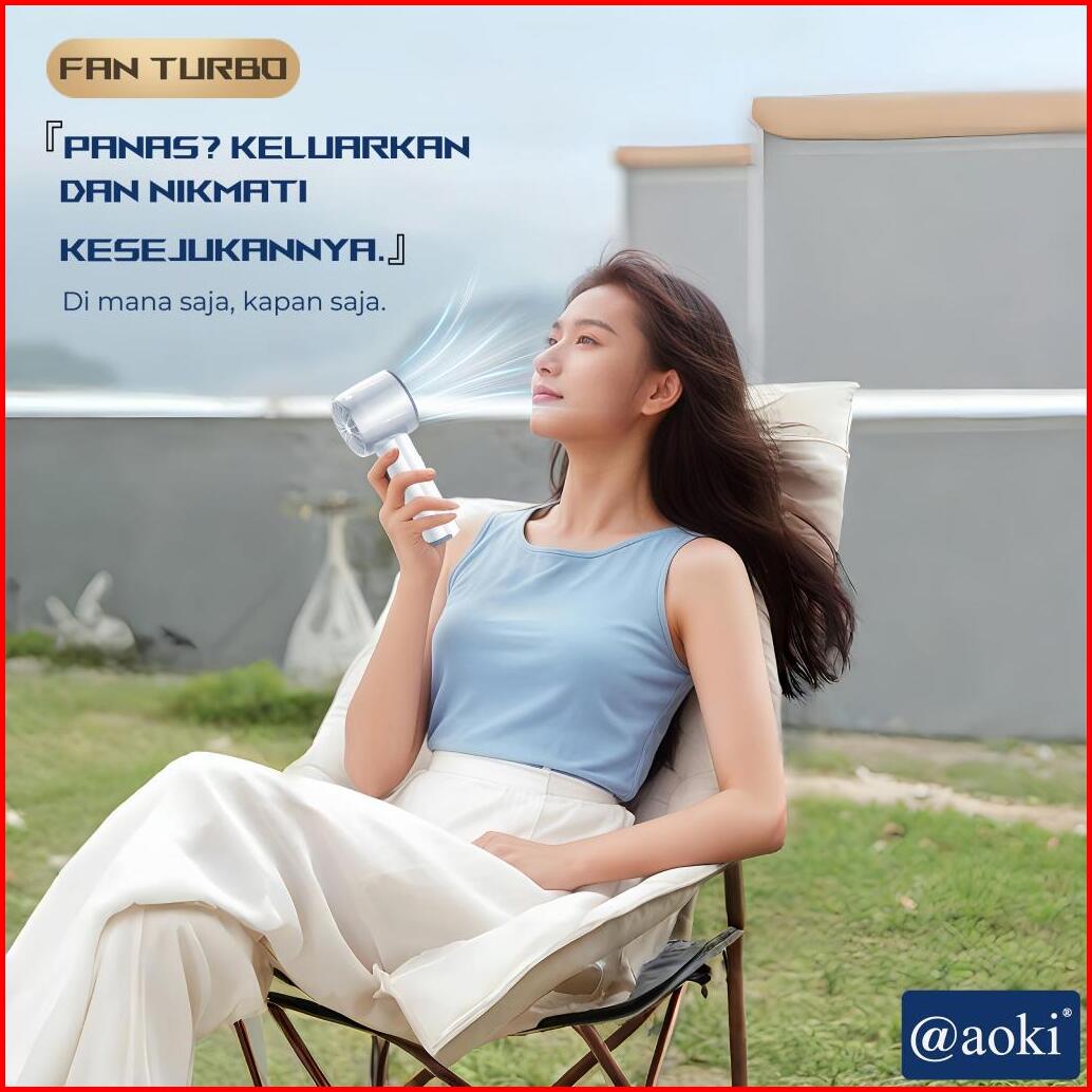 Aoki Kipas Turbo Cool Pro Mini Ac Super Sejuk Angin Kencang Pengisian Type-c Layar Digital Angin Maksimal Turbo Jet Desi