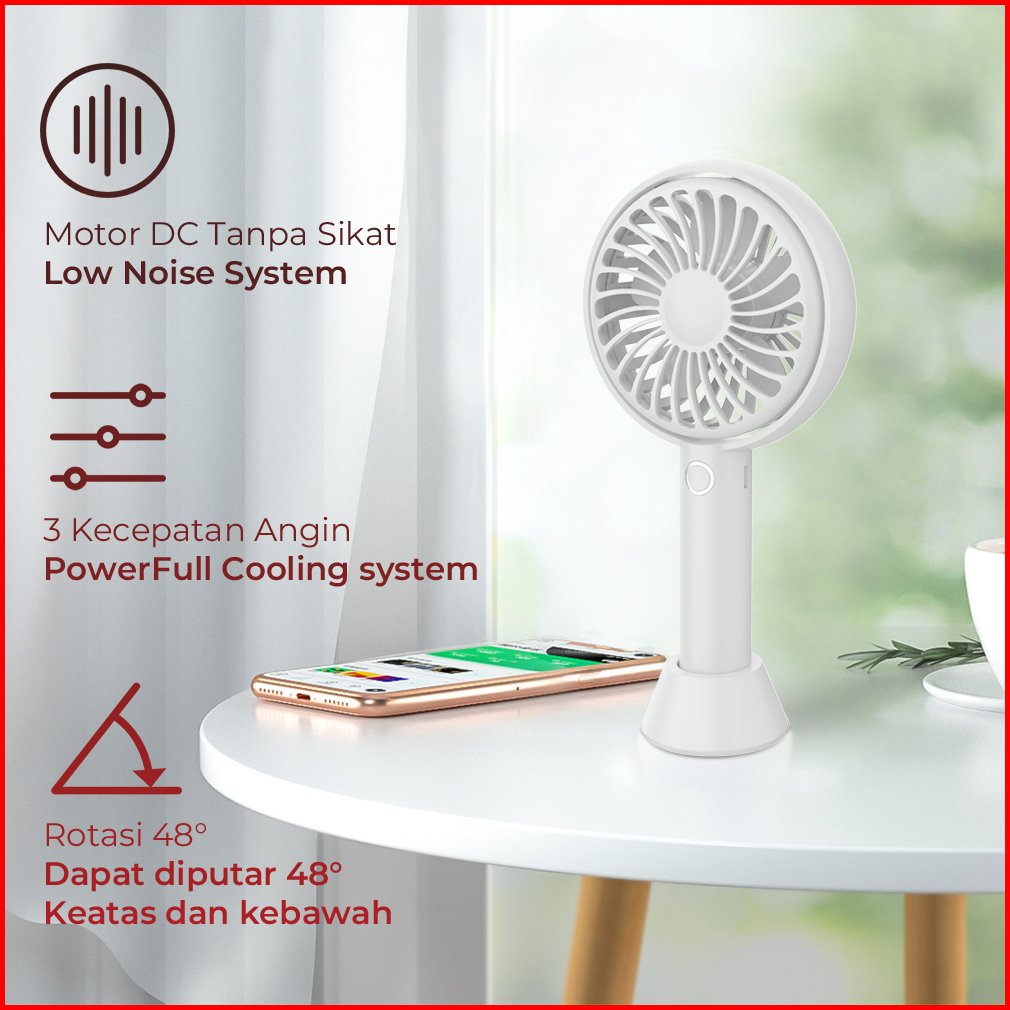 Aoki Kipas Mini Genggam Usb 48 Derajat Rotasi 3 Kecepatan Baterai 18650 Bisa Cas Ulang