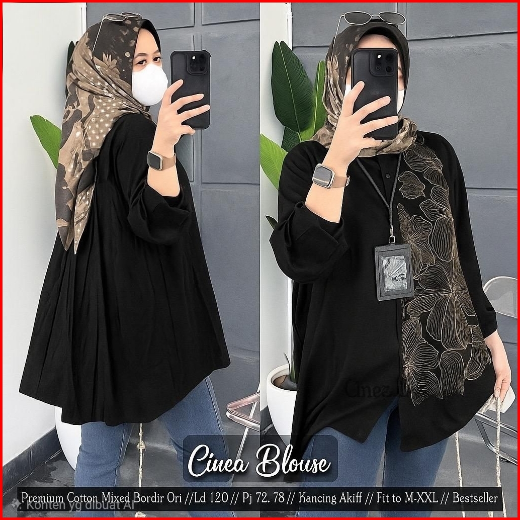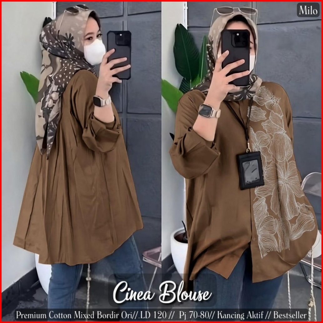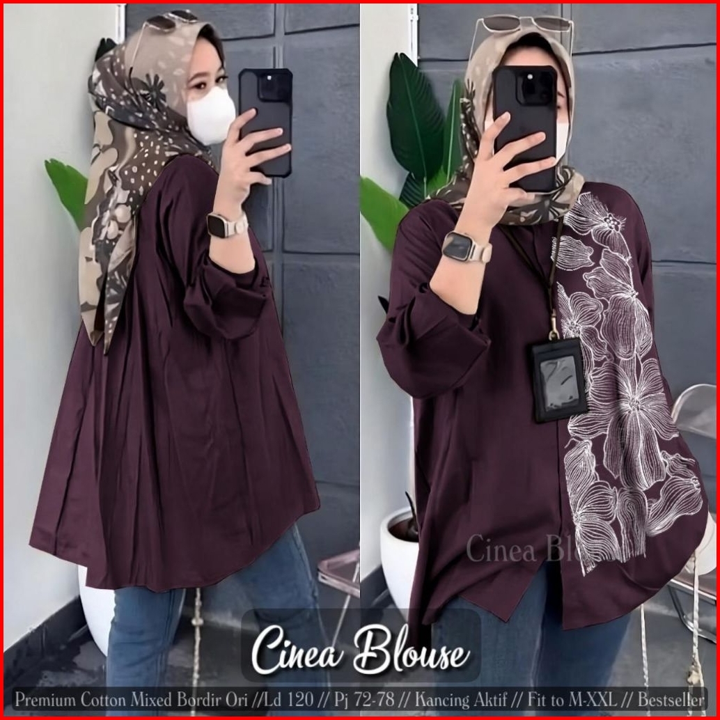 Baju Atasan Kemeja Katun Bordir Bunga Wanita Korean Style Shirt Cantik Casual Cinea Blouse By Ashoka