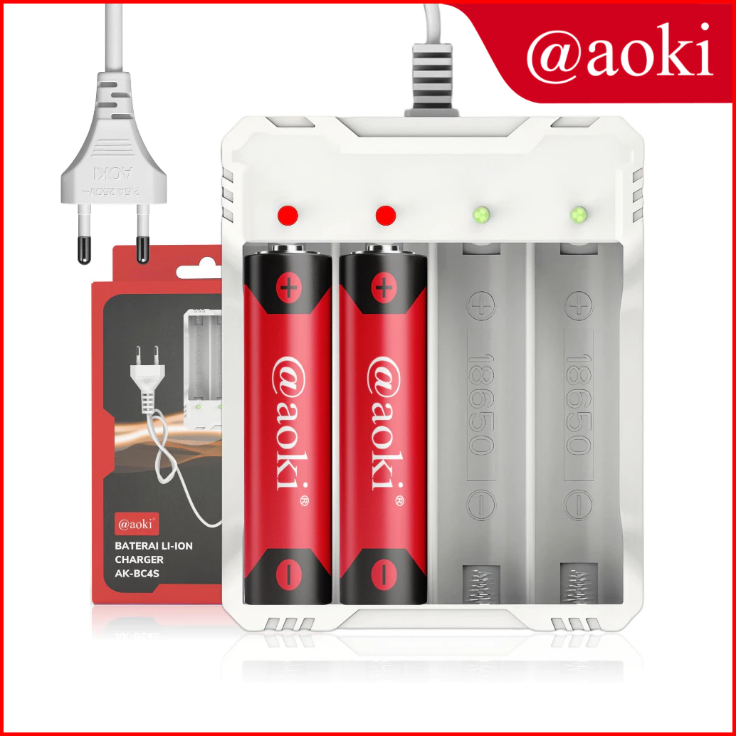 Aoki Charger 18650 2 Slot 4 Slot Arus Stabil Smart Charging Aman Untuk Baterai