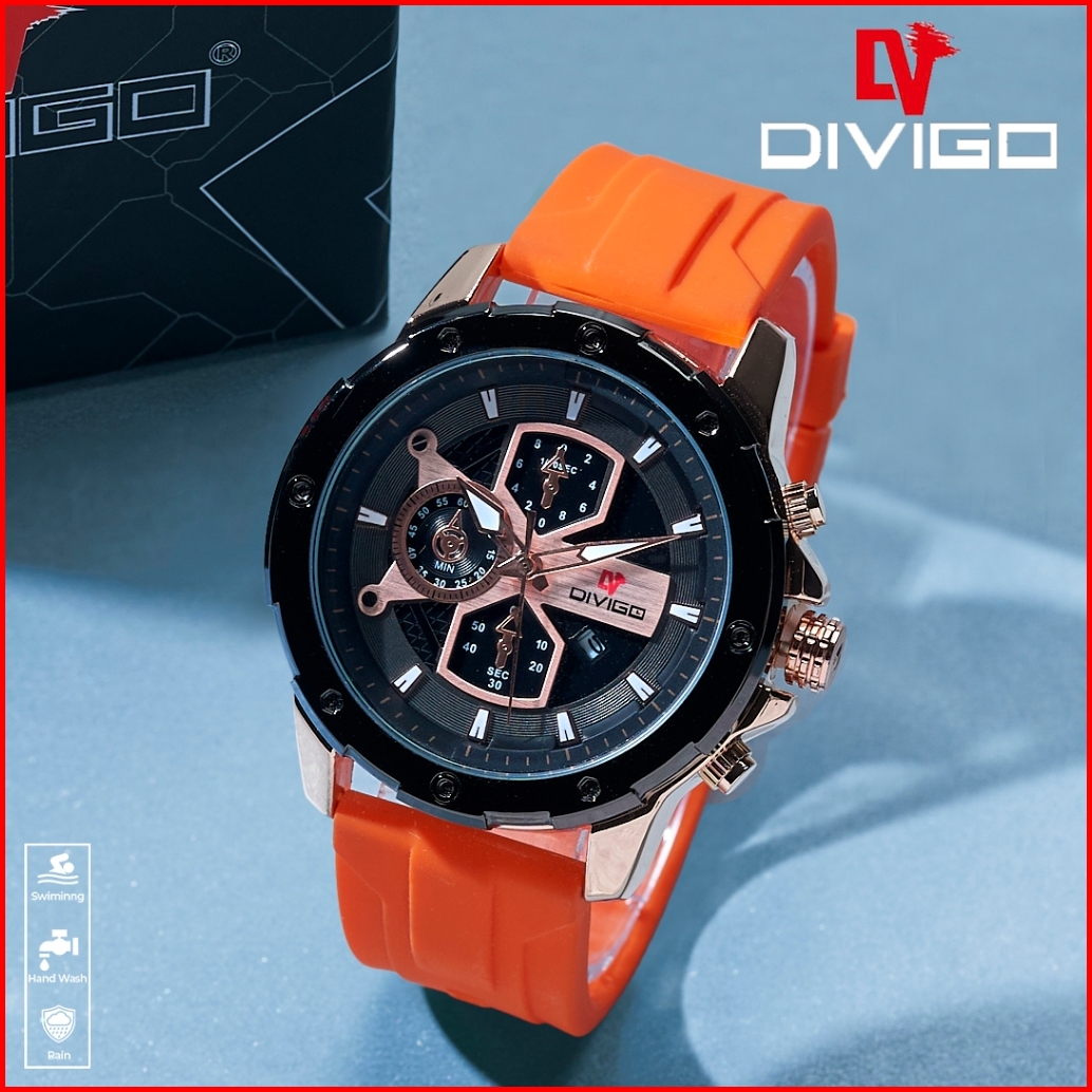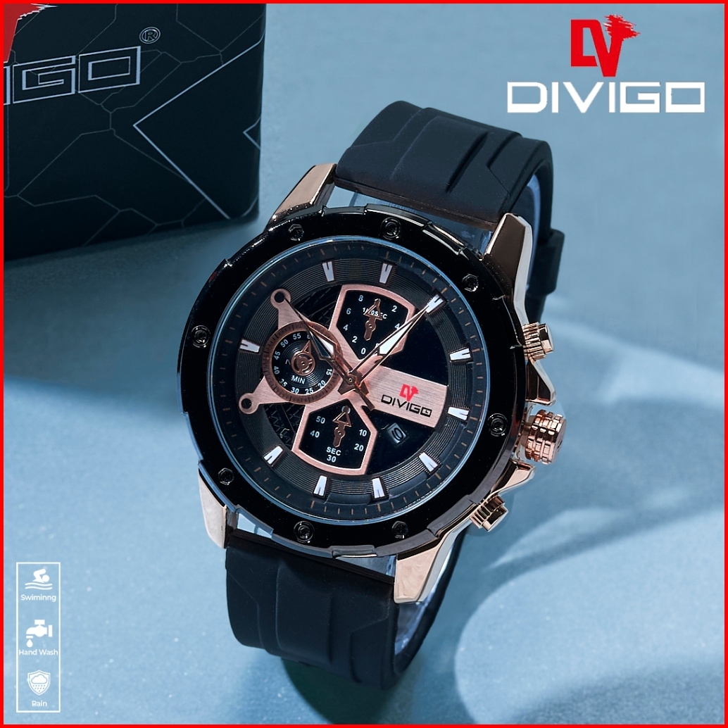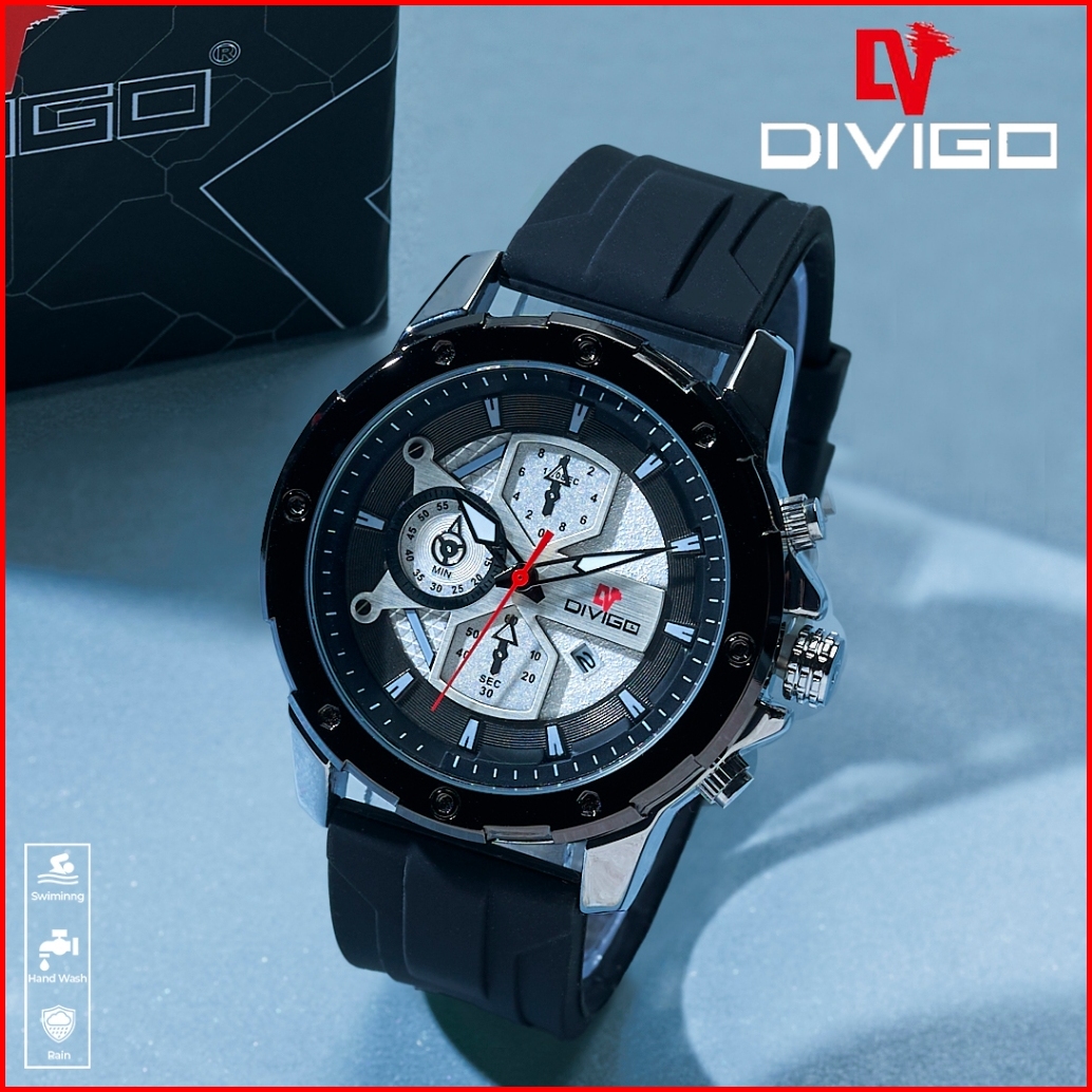 Jam Tangan Pria Divigo Original Dv-7016-1 Strap Rubber Tanggal Aktif Tahan Air