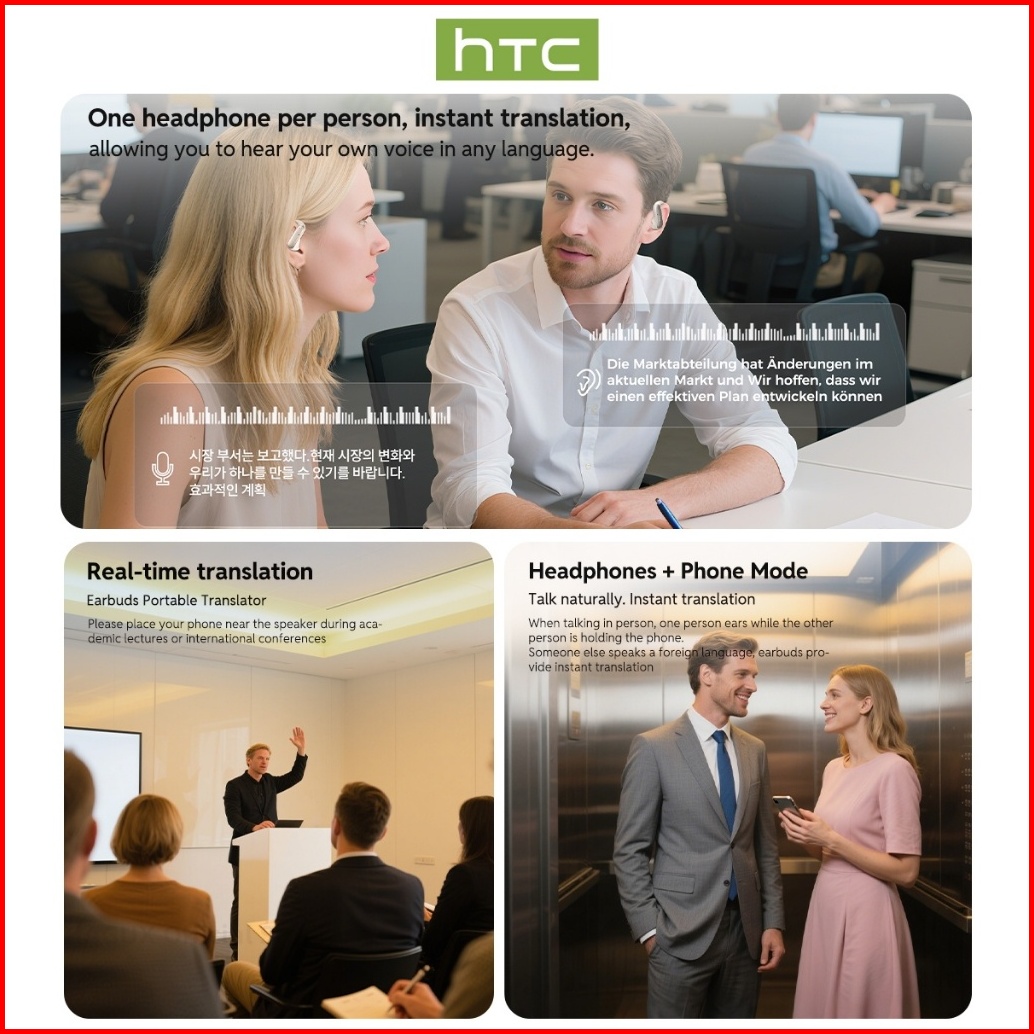 Htc Ne52 True Wireless Bluetooth Headset V6.0 Ows Tws Open Ear Earphone Headset Bluetooth Terjemahan Ai Tws Earhook Head