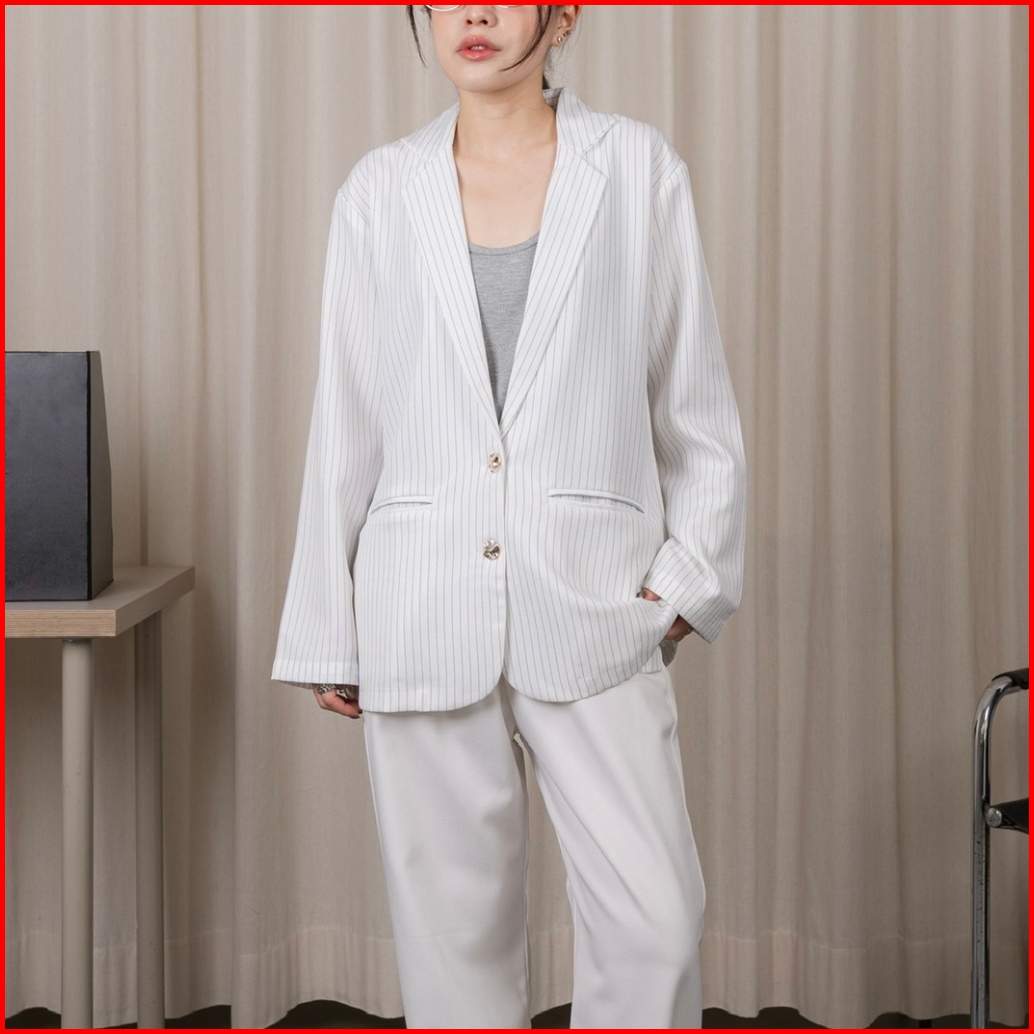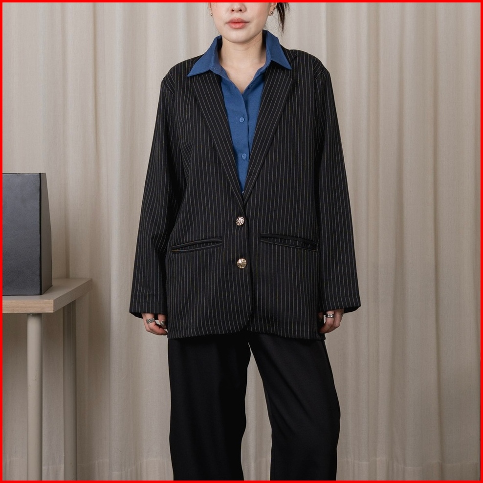 Asoka Fairy Blazer 442 - Stripe Blazer Pocket Oversize Long Sleeve - Atasan Wanita Outer Kerja