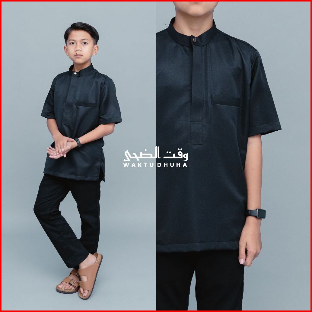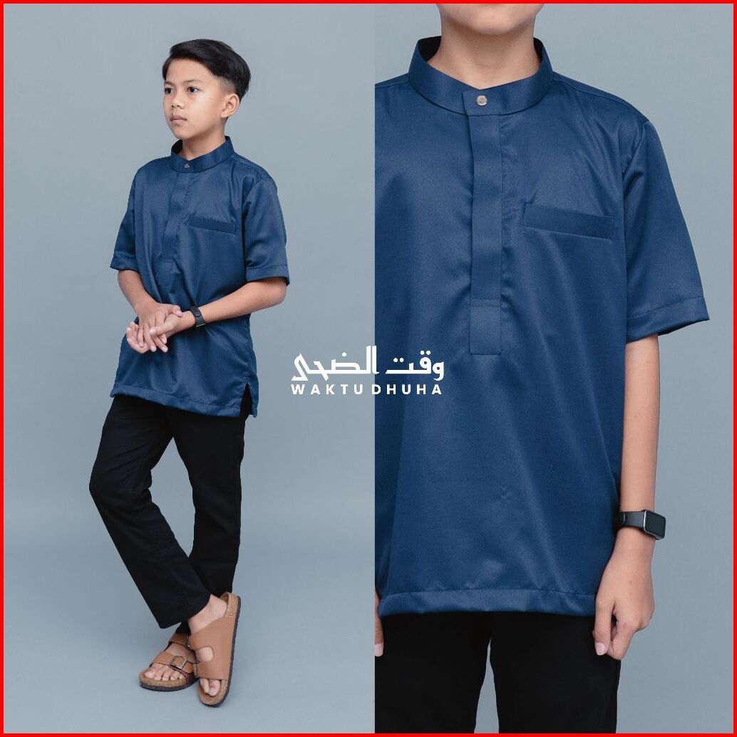 Waktu Dhuha - Atasan Koko Anak Lengan Pendek Hidden Zipper Bahan Toyobo Adem Lembut
