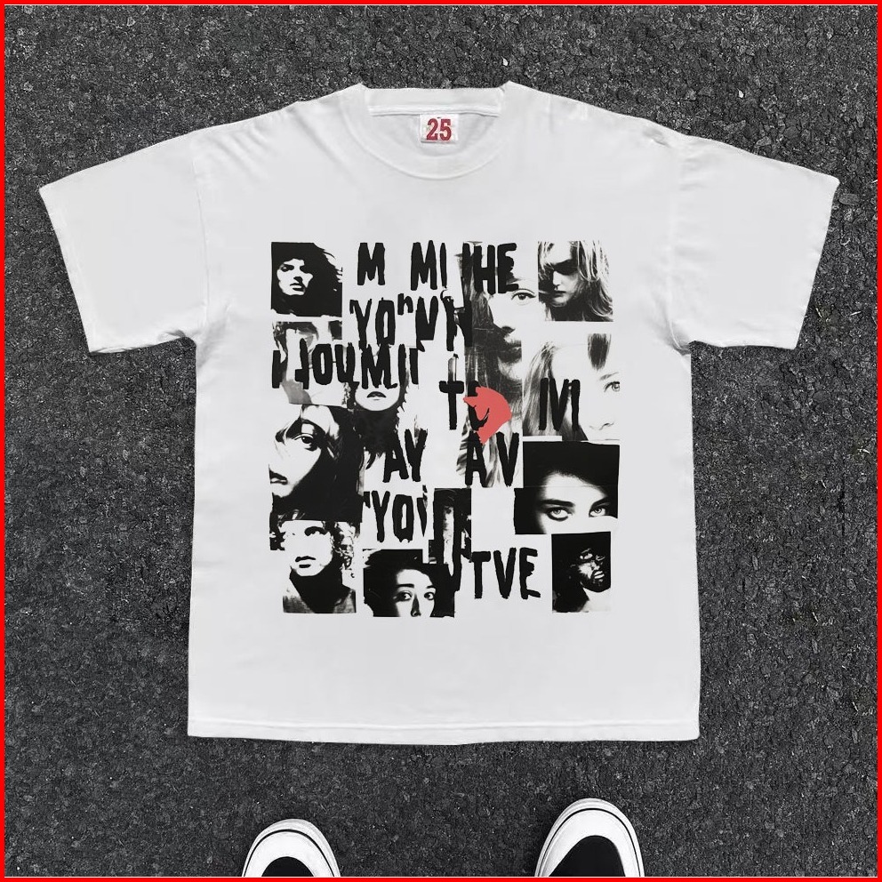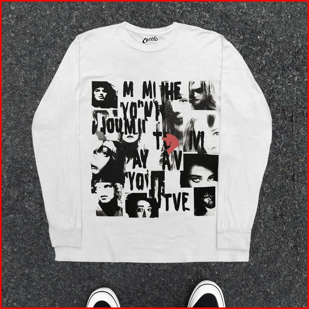 Boombap American Retro Style Lengan Panjang Oversize American Portrait Lengan Panjang Wanita Putih Baju Atasan Wanita Te