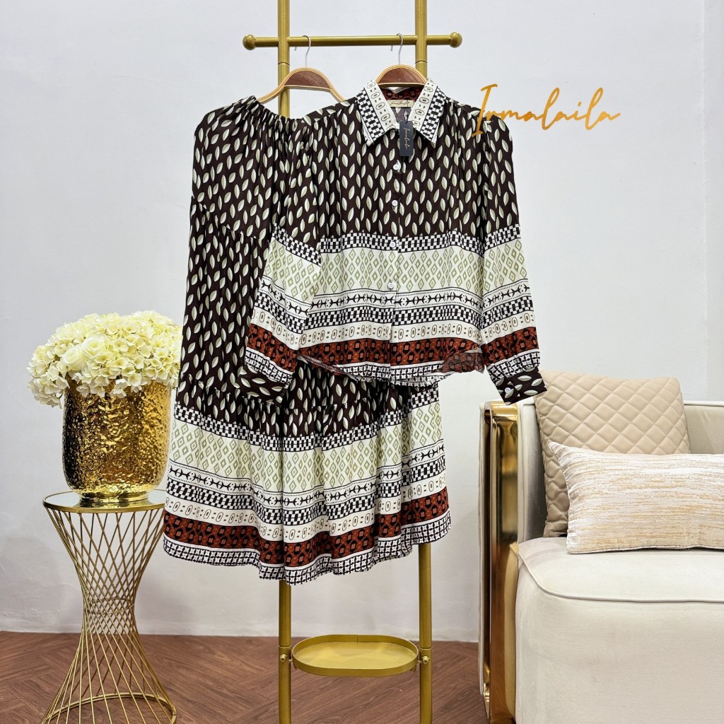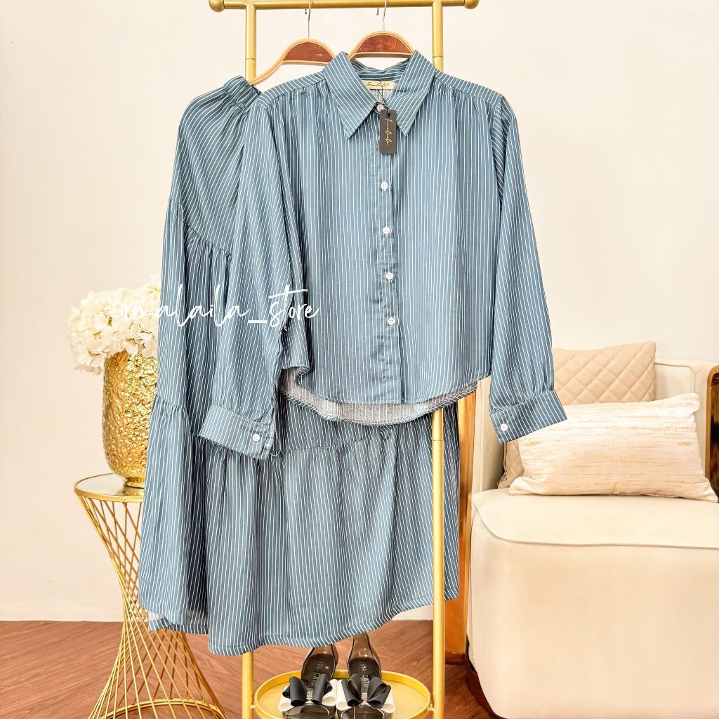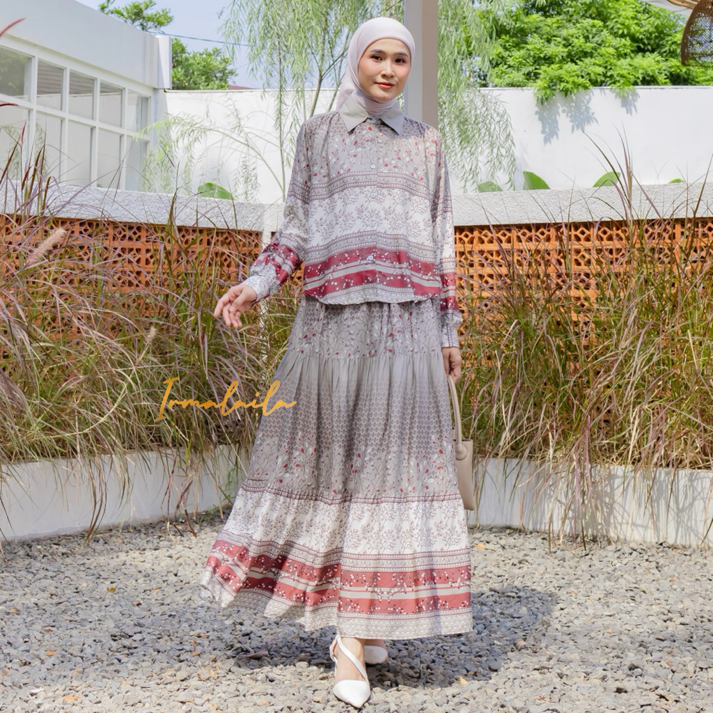 Azura One Set Blouse Rok Katun Rayon Wanita Nyaman Cantik / Setrok Wanita