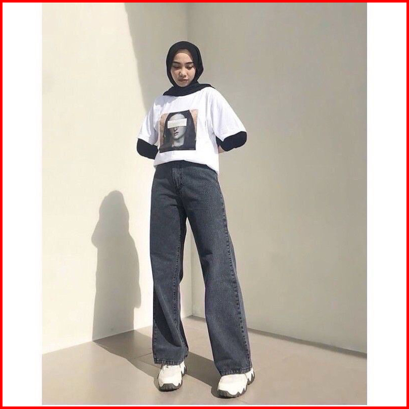 Kulot Jeans Wanita - Highwaist Kulot Loose Jeans Jumbo 35 - 42 - Celana Jumbo Wanita - Jeans Wanita