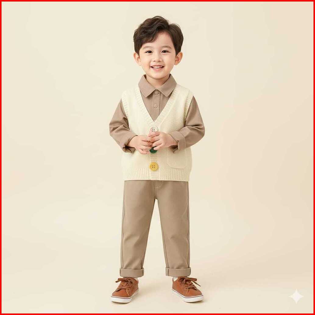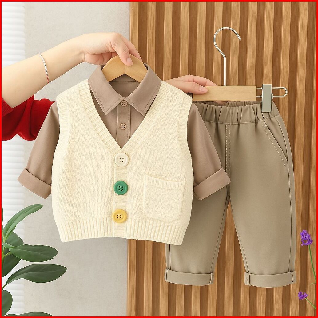 Setelan Anak Laki-laki Kekinian 3 In 1 Kemeja Rajut Cardigan Celana Panjang Chinos Anak Usia 1-5 Tahun Fashion Anak Kore