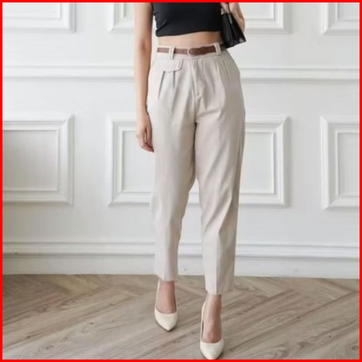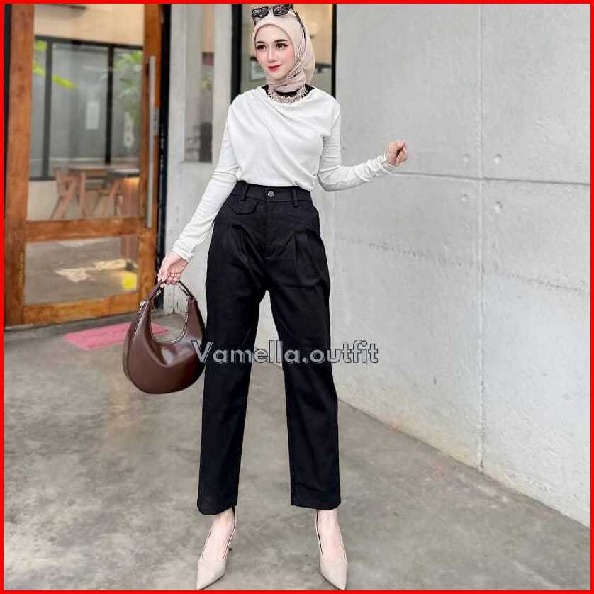 Ara Basic Pants Highwaist Celana Baggy Angkel Pants Celana Kantor Loose Pants