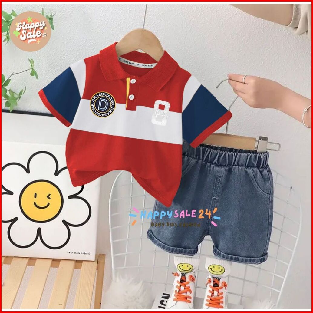 Setelan Anak Cowok Polo Shirt Lengan Pendek Celana Pendek Jeans Fashion Anak Laki Laki Usia 1-5 Tahub