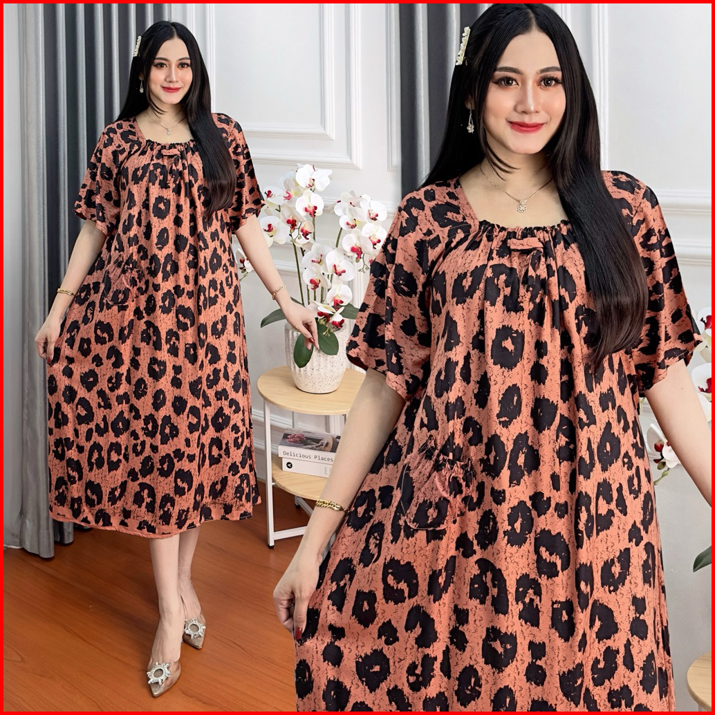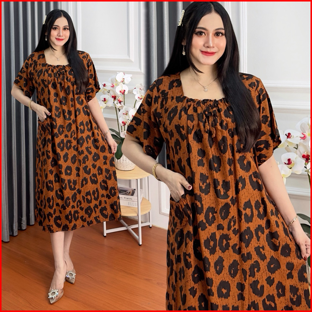 Daster Fuji Leopard Rayon Motif Tebal Adem Cantik Kekinian
