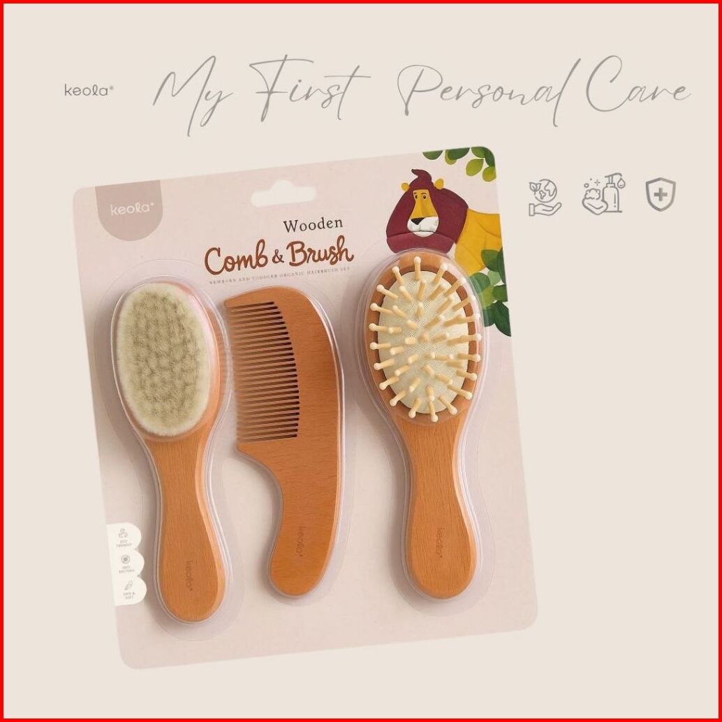 Keola - Set Sisir Kayu Rambut Anak Premium Wooden Kids Comb Brush Bamboo Sikat Rambut Bambu Lembut Emium Wooden Kids Com