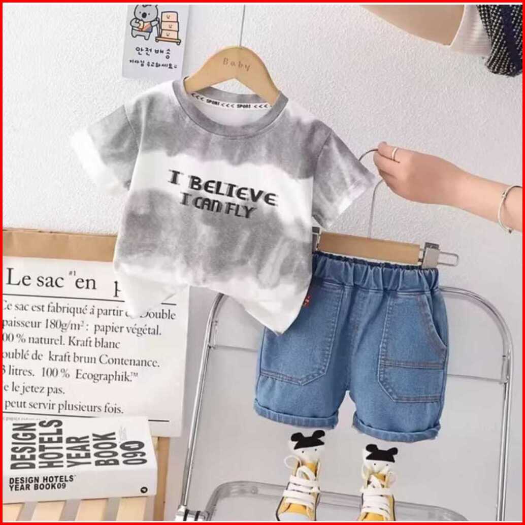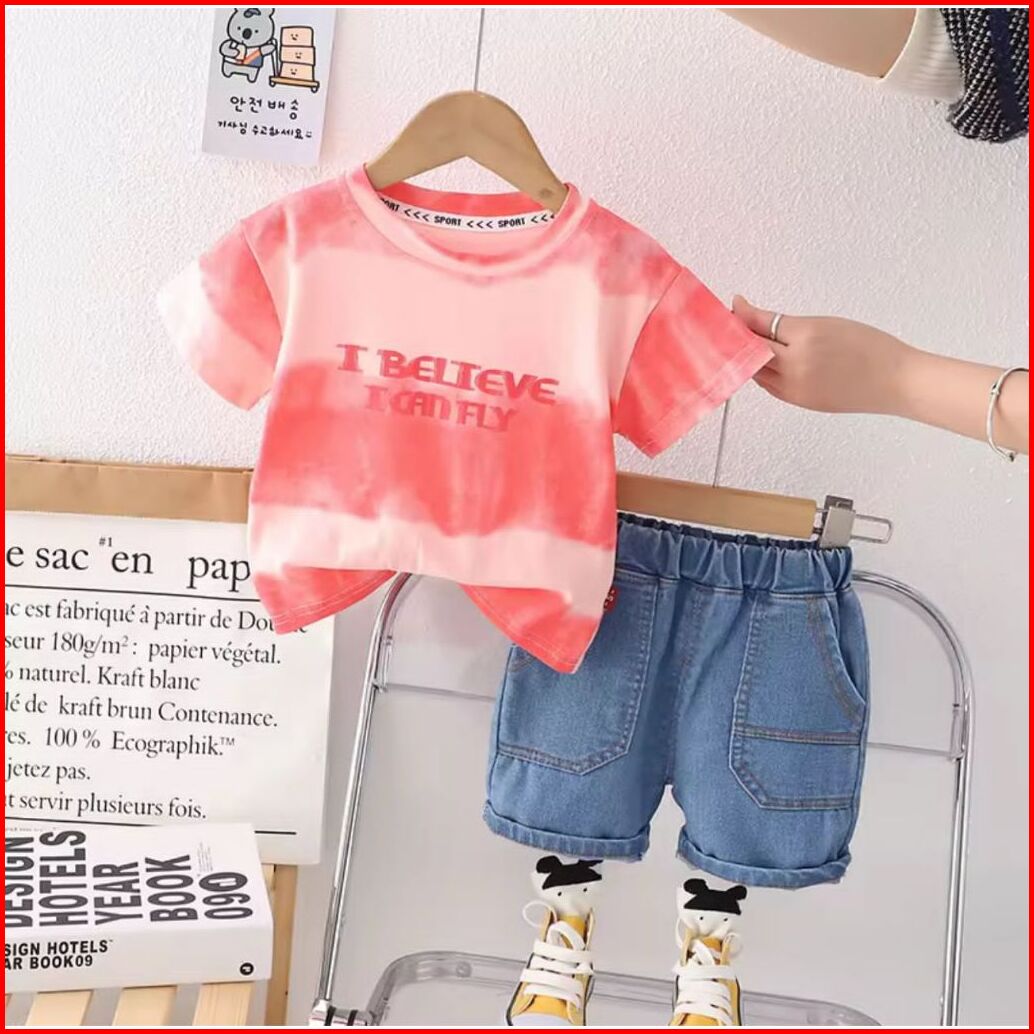 Setelan Jeans Anak Usia 1-5 Tahun Baju Anak Laki-laki Dan Perempuan Set Anak Kaos Celana Jeans Terbaru Dan Kekinian