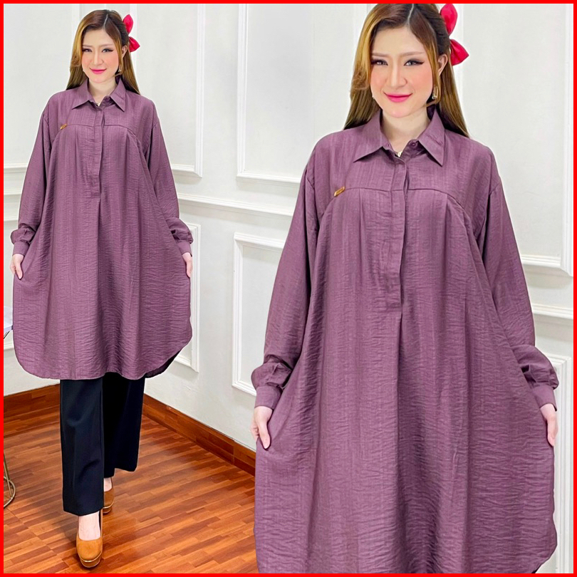 Zahra Tunik Wanita Jumbo Polo Linen Premium