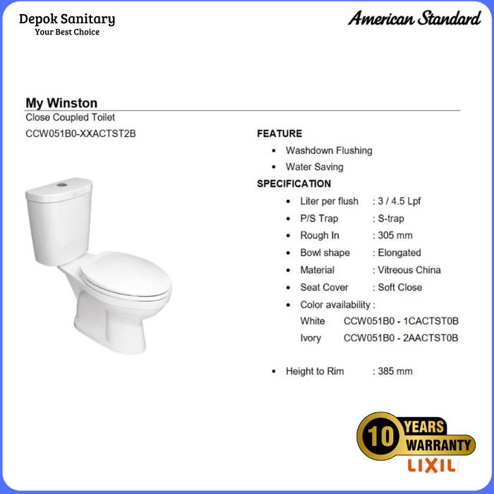CLOSET DUDUK AMERICAN STANDARD MY WINGSTON SINGLE FLUSH/ CLOSET DUDUK - SF NO PAKET, INSTAN ( TANPA PETI KAYU)