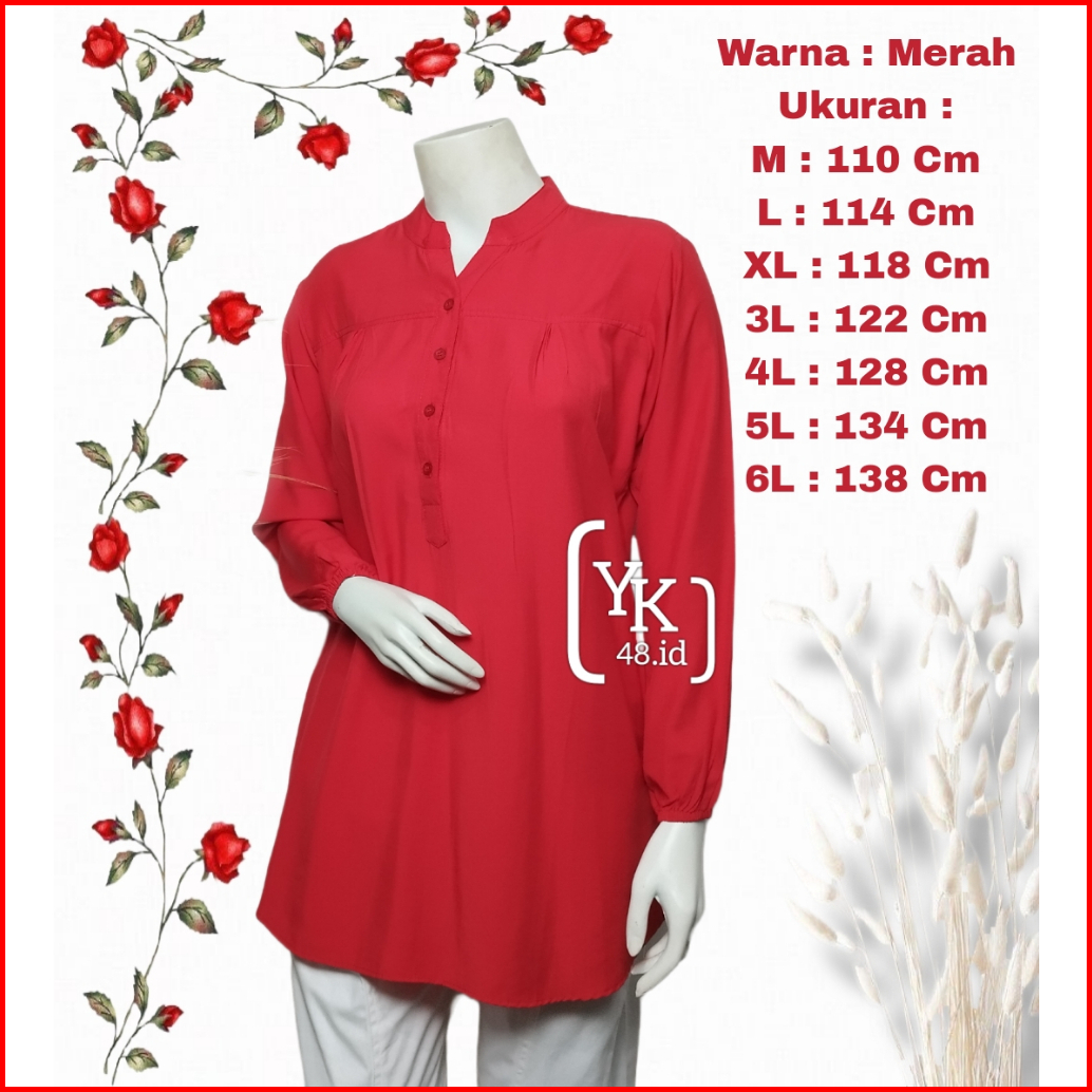 Blouse Merah Polos- - Merah - Blouse Premium - Blouse Katun - Blouse Wanita Lengan Panjang - Kemeja Blouse - Blouse Wani