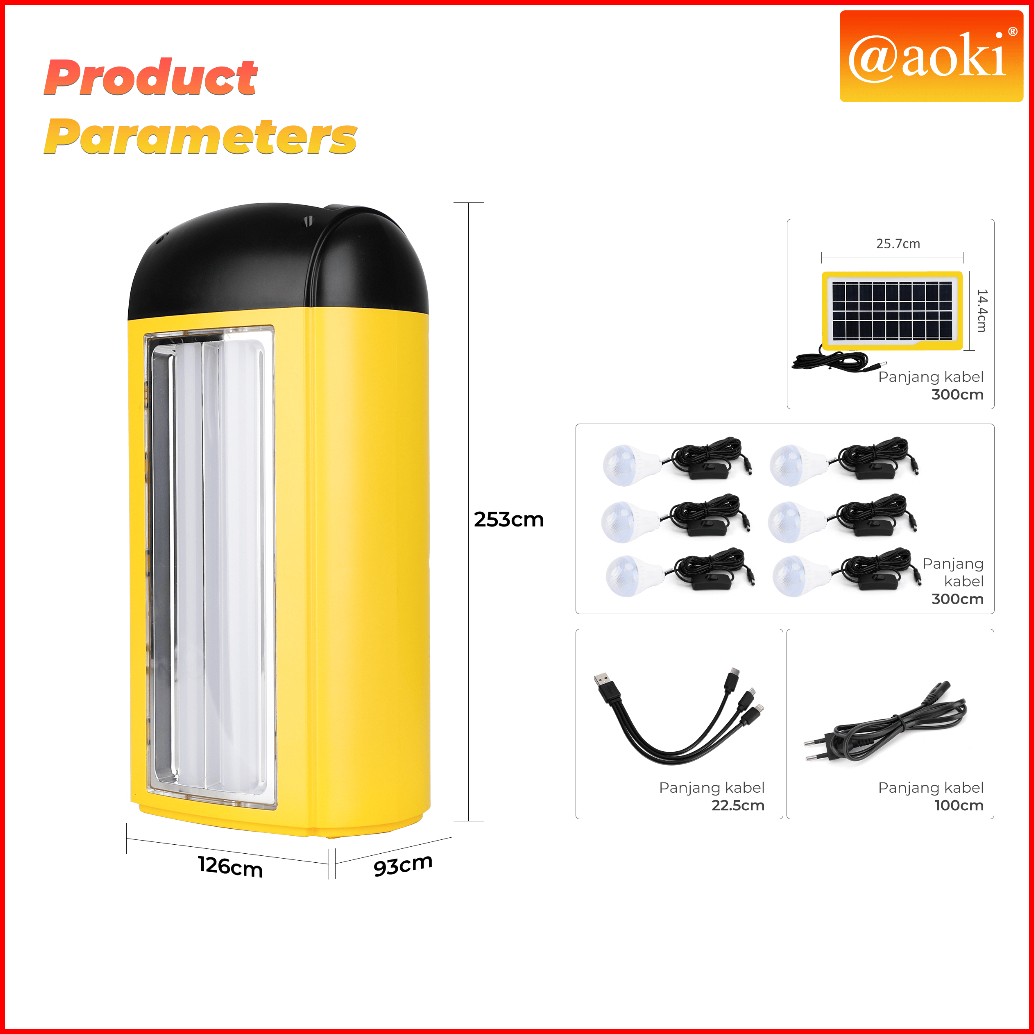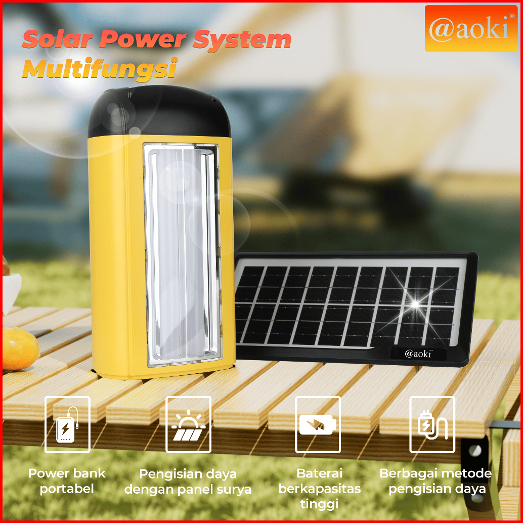 Aoki Solar Power System Dengan Power Bank Pengisian Usb 6 Port Dc Dan Baterai Isi Ulang Kapasitas Tinggi Lampu Darurat M