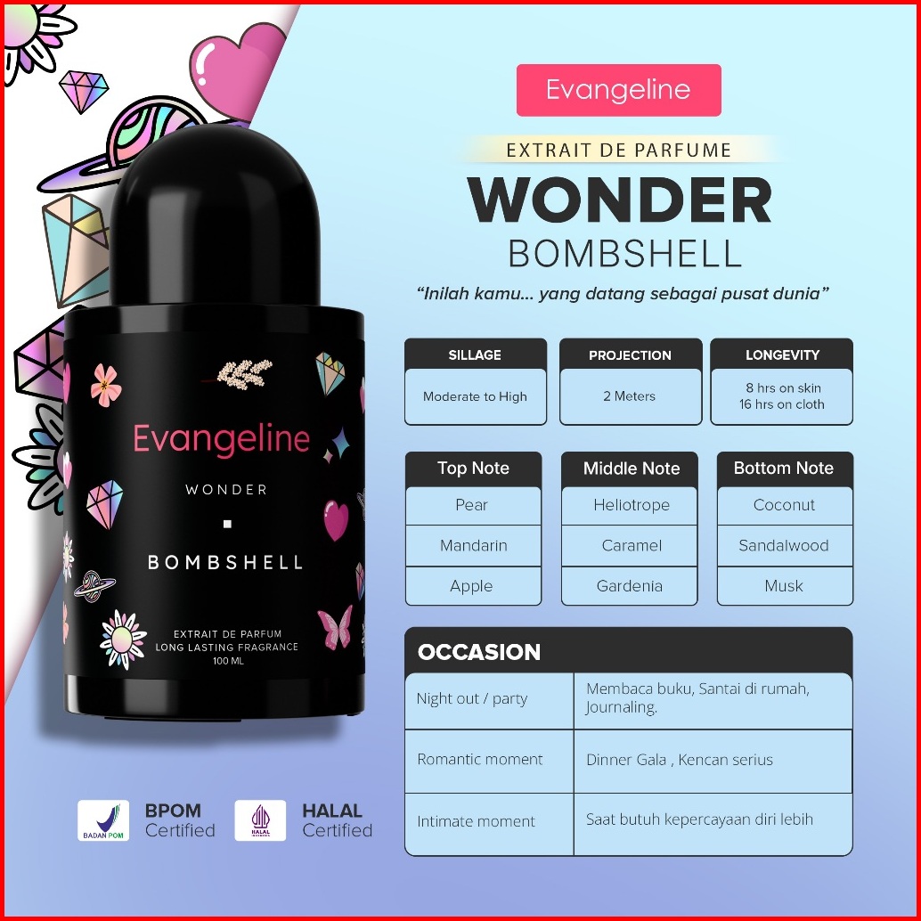 New Evangeline Wonder Series - Extrait De Parfum 100 Ml Parfum Wanita - Long Lasting Fragrance