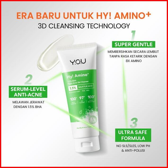 Y.o.u Hy Amino Plus Series 2 Niacinamide Brightening 20 Centella 1.5 Barrier Bha Fight Acne Gel Cleanser