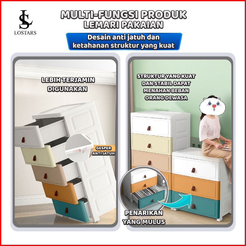 Lostars Lemari Plastik Pakaian Lemari Plastik Anak Lemari Plastik Multifungsi T09