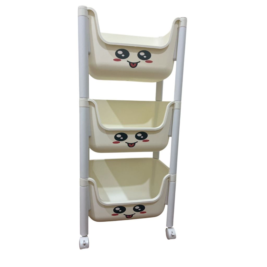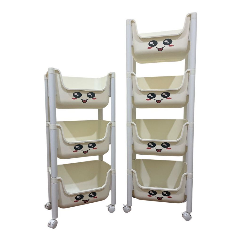 BAKINDO Rak Susun Penyimpanan Terbuka Rak penyimpanan mainan Serbaguna Rak Trolley Susun Dengan Roda Rak Buku Plastik