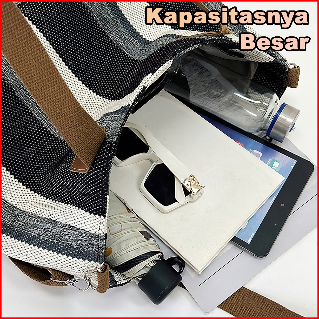 Tas Tote Bag Selempang Kanvas Wanita Berkapasitas Besar 3 In 1 Tas Bahu Kekinian Lw-29