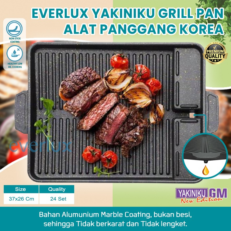 Grill Pan Anti Lengket Alat Panggang 2157 Korean Yakiniku Grill Pan Marble Coating Panci Pemanggang sate daging BBQ