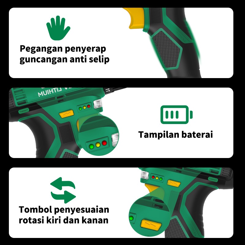 ISKU Bor Baterai Mulitifungsi 12V 1500mAh Battery Cordless Drill Mesin Bor Lithium /Lithium Electric Dril 12V Mesin Bor