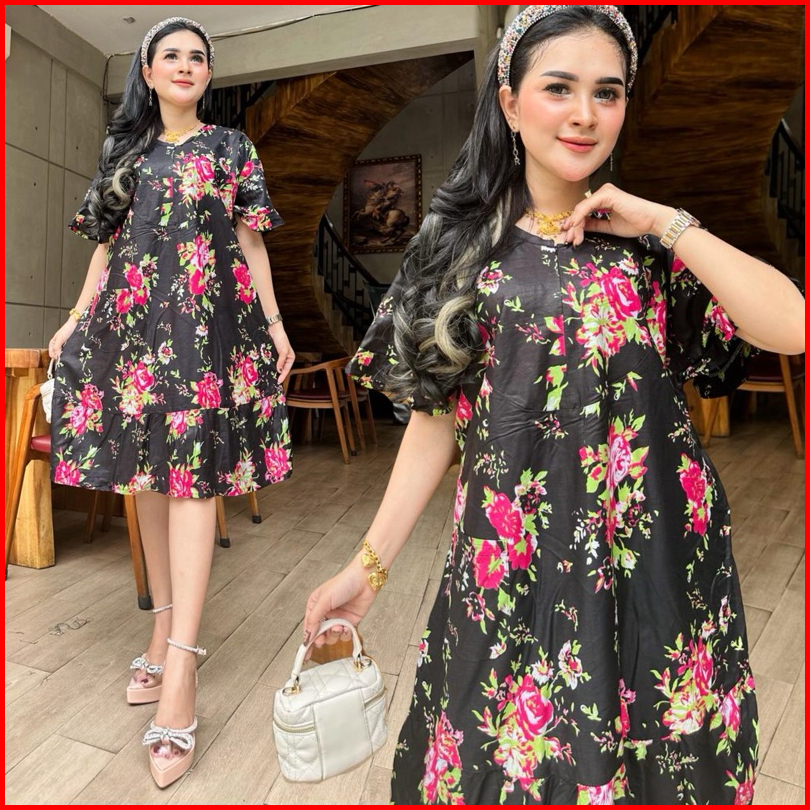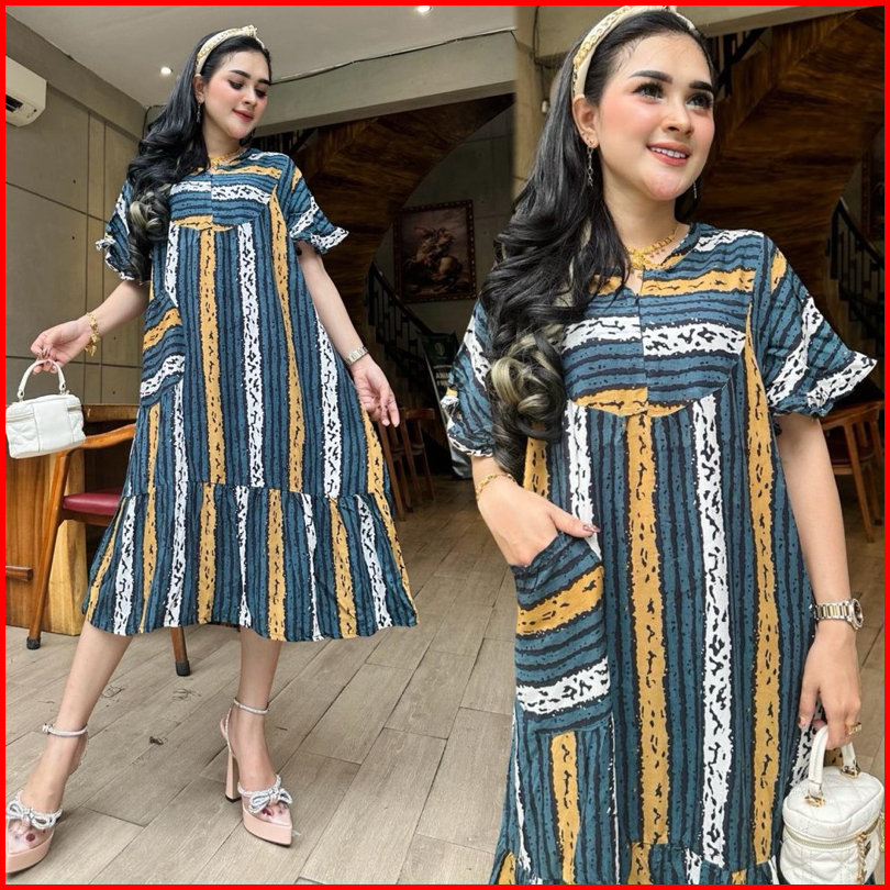 Daster Mahalini Rayon Strip Ld 110 Kekinian Busui Resleting Depan