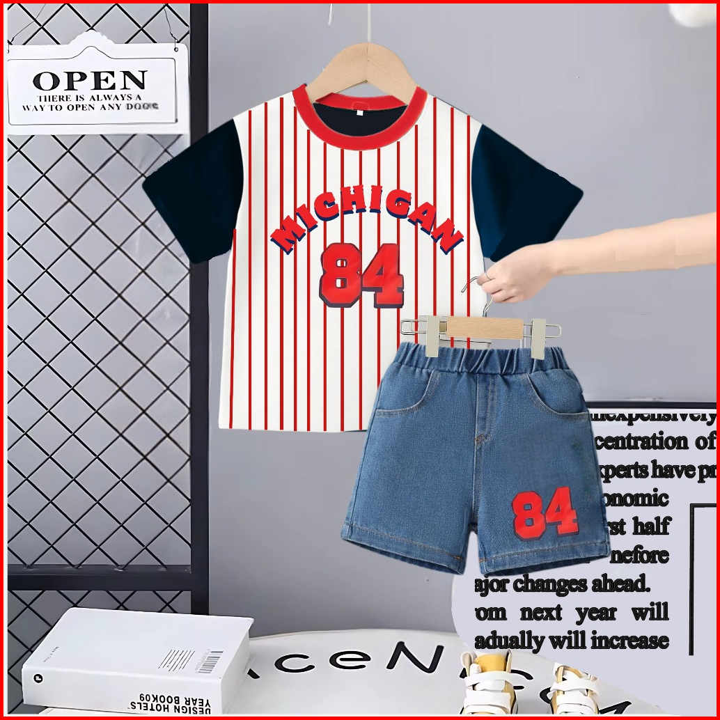 Setelan Anak Baseball Usia 1-5 Tahun Baju Anak Laki-laki Dan Perempuan Set Anak Kaos Motif Celana Jeans Terbaru Dan Keki