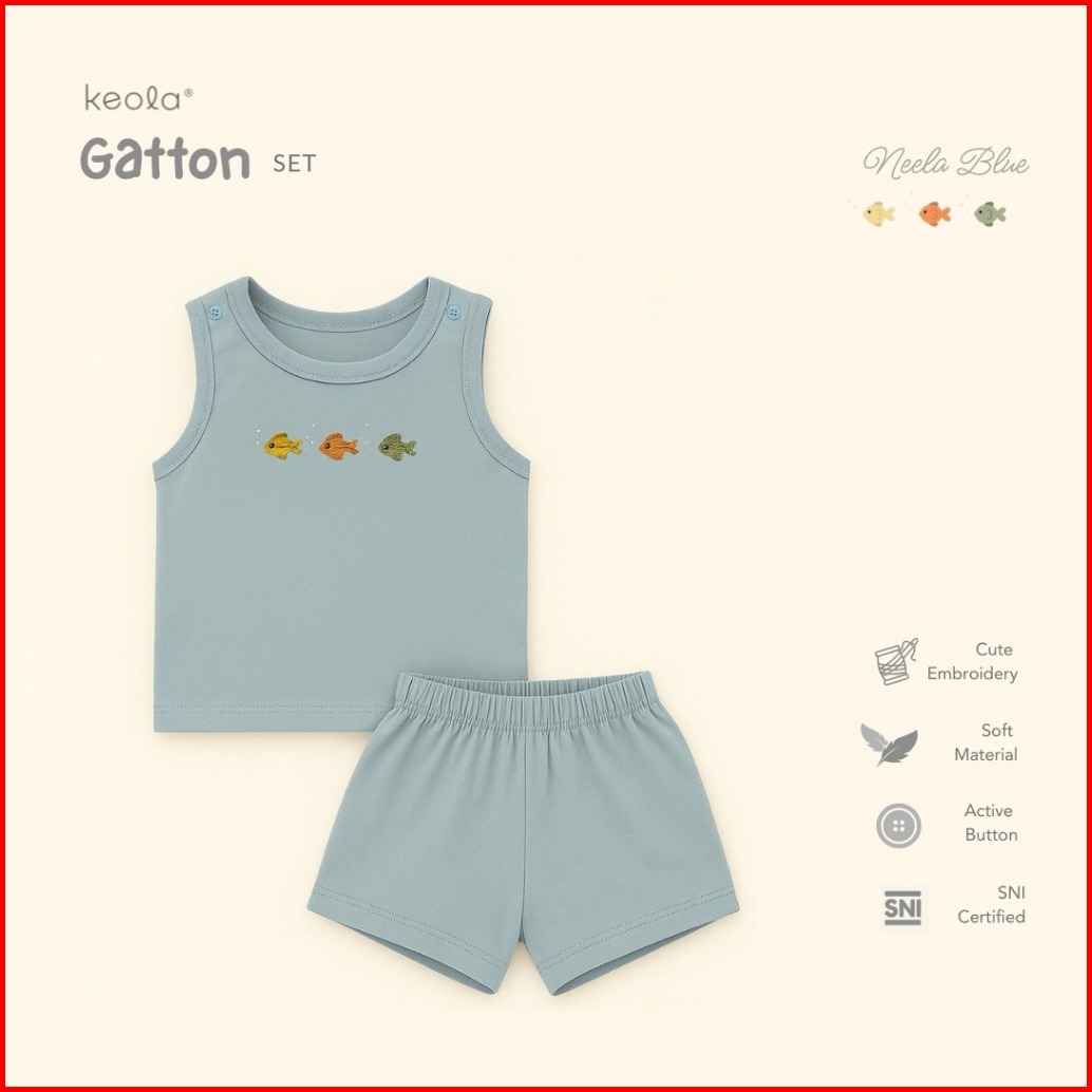 Keola Setelan Gatton Baju Anak Bayi Tanpa Lengan Setelan Kutung Anak Korea Kasual Premium Baju Anak Bayi Usia New Born -
