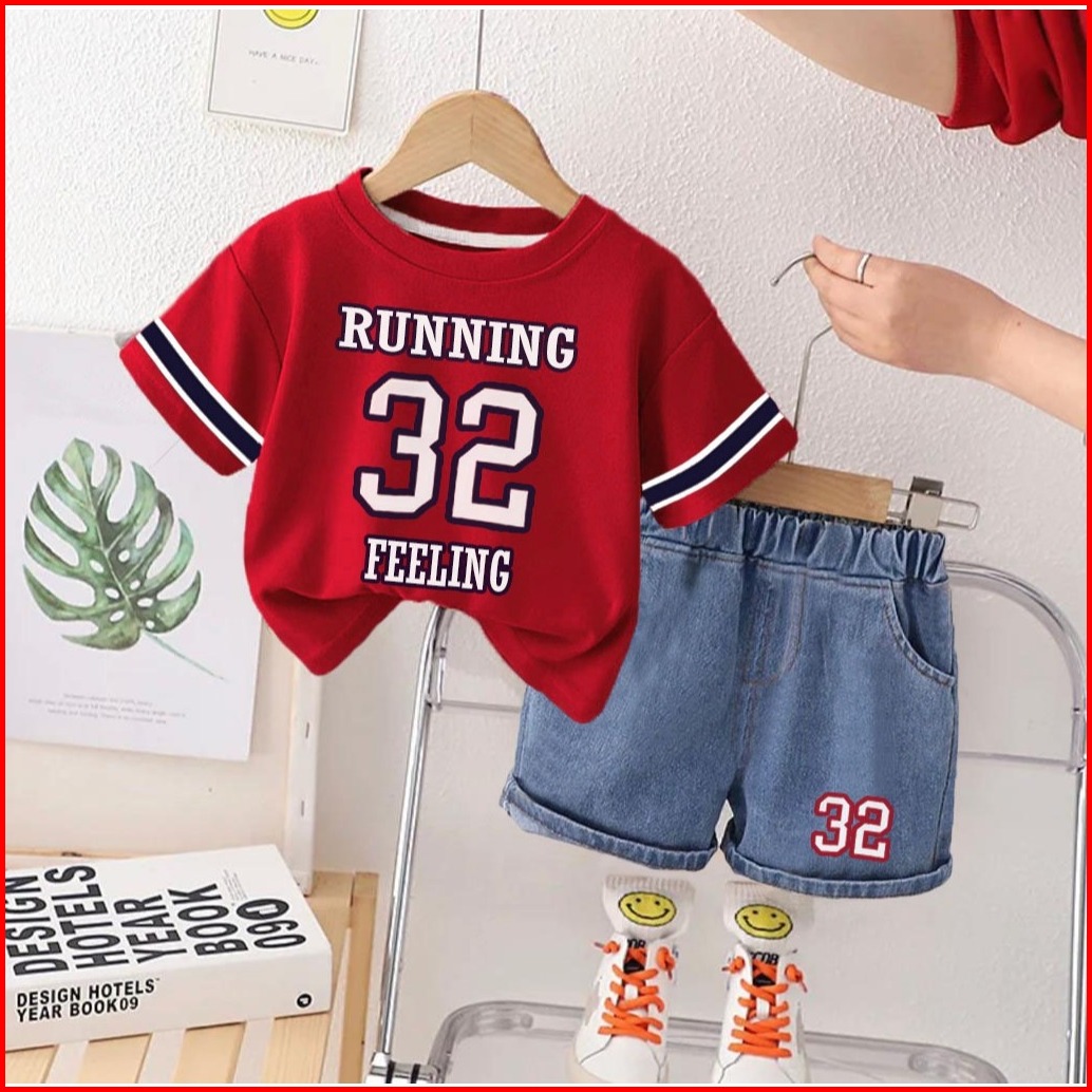 Setelan Kaos Baseball Anak Celana Pendek Jeans Denim Usia 1-5 Tahun Top Fashion Anak Laki-laki Pakaian Anak Laki-laki Ke